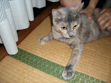 一昨日、出張から帰ってきたウチのお父さんの四国みやげは、コレ海老煎餅としょうゆ豆(そら豆の煮たの)です。私は海老煎餅が好物なので、今回はいいカンジ♪名古屋の坂角のゆかりが大スキなんだけど、似た様なのが入ってておいしかったです。そら豆の方も、甘辛で私好みでした。帰る早々、例の娘の金縛り体験談を聞きながら、ちびの見繕い(爪切りと肉球の周りの毛切り)をしているウチのお父さんです(^◇^;)ちびを撮る振りをして写しました。初登場です。オバチャンみたいなセーター着てるけど、男です。 俺は霊見てみたいゾ。金縛り遭ってみたいゾ。って言ってたけど、変わった人でしょ!そして、きのうの夕方、今度は、広島へ向かいました。最近、娘はお父さん見ると、「あっ、ひさしぶり~♪」と言います。娘よ、そりゃないヨ!