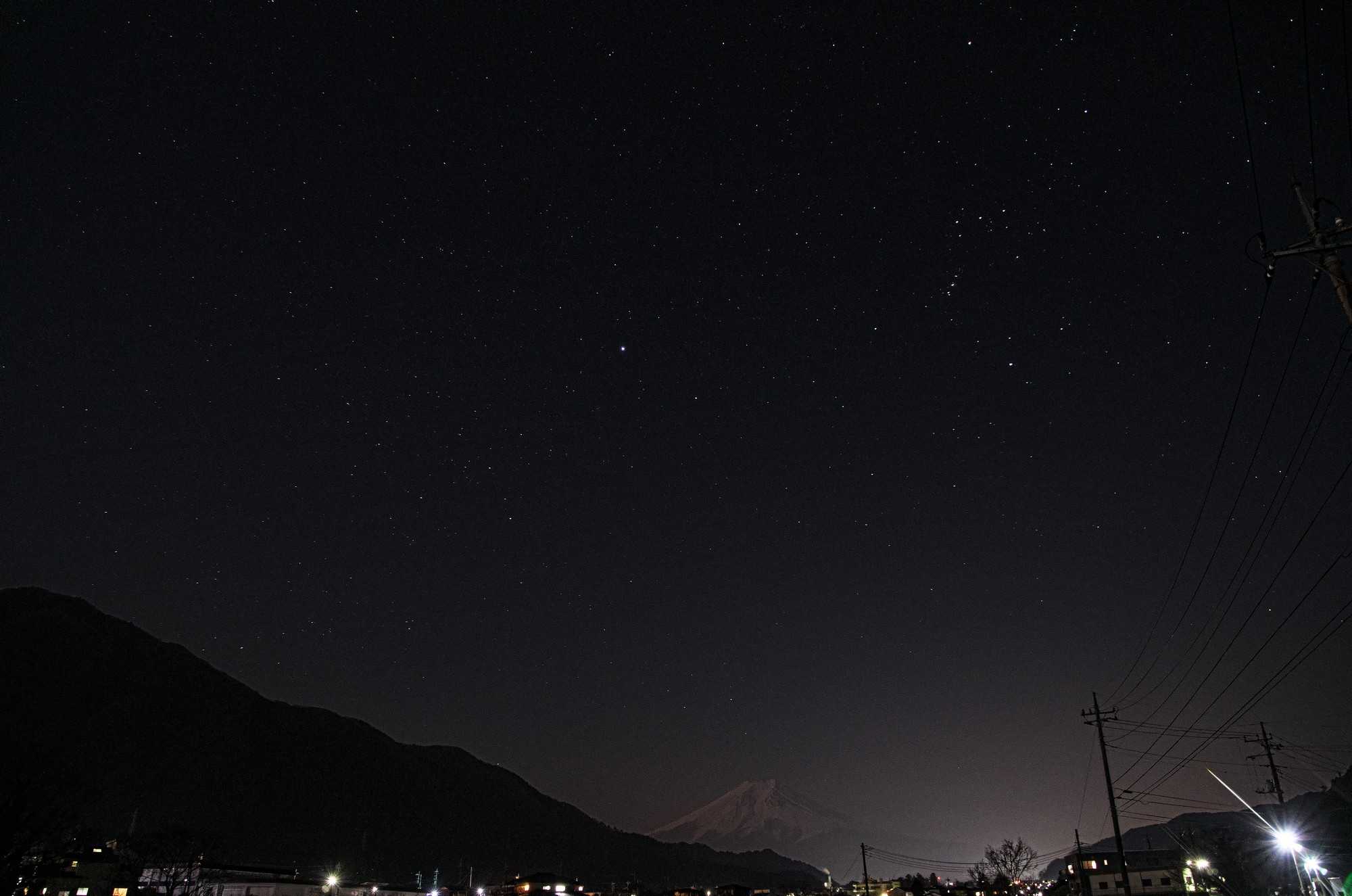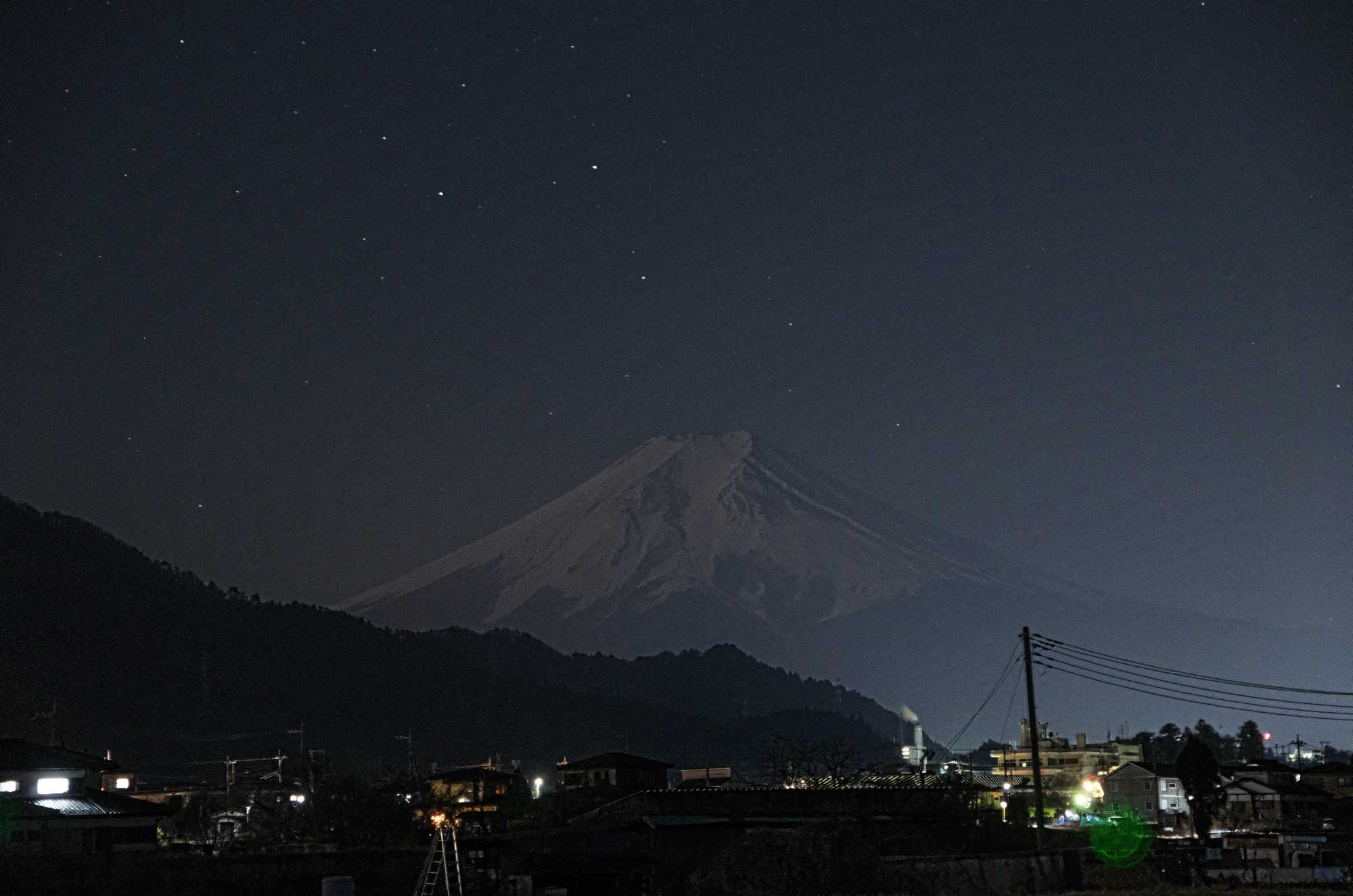 到着寸前でいつもの富士山ポイントで月夜の富士。