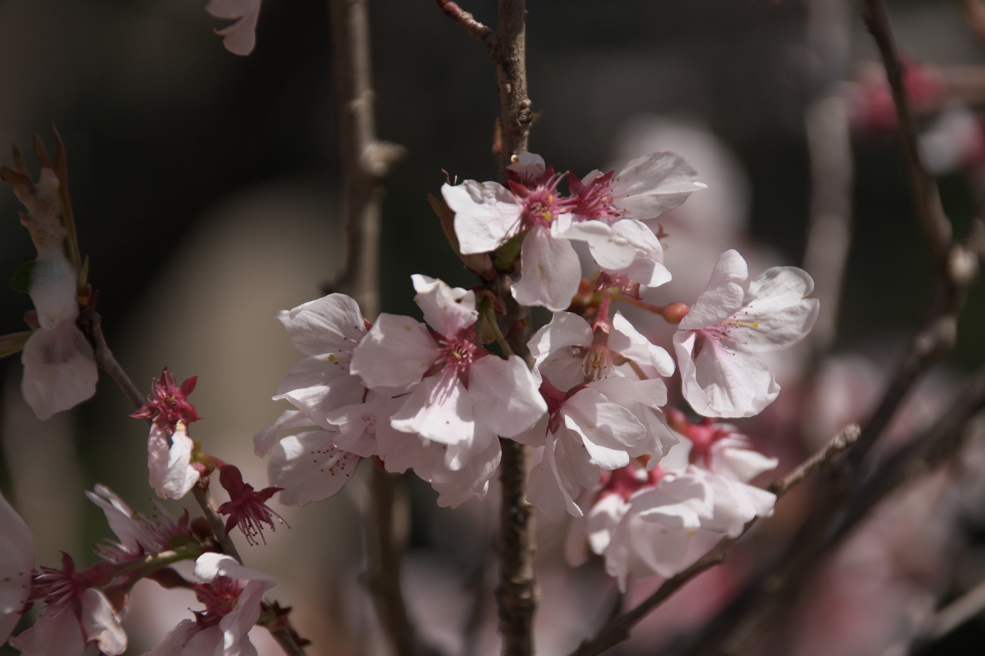 ガクの部分が膨らんだエドヒガンザクラ系統が多いようです。ソメイヨシノよりも小型の花で花びらも細めです。