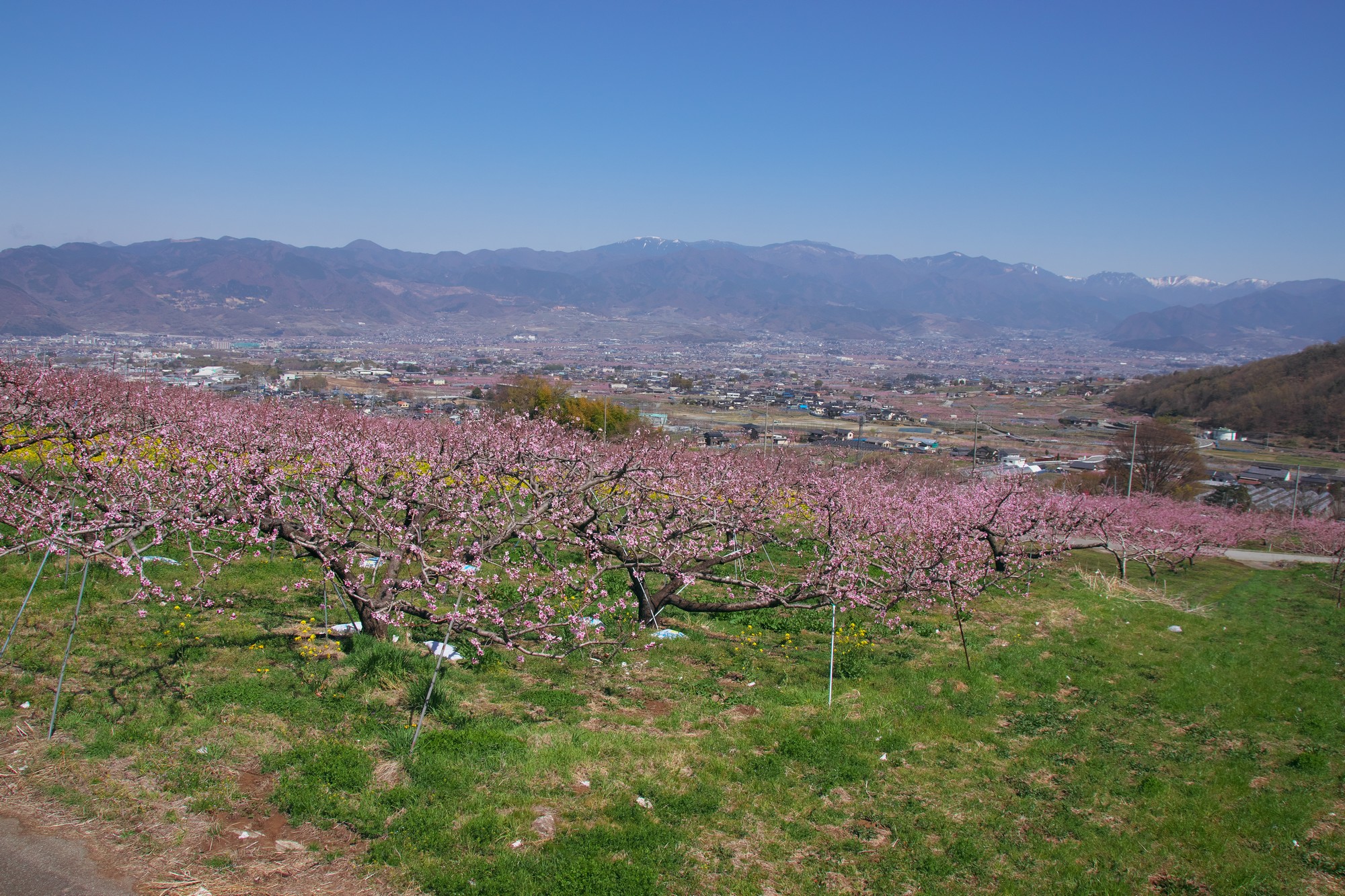 このあたりから甲府盆地と桃の花、さらに桜と南アルプスの眺めが楽しめます。