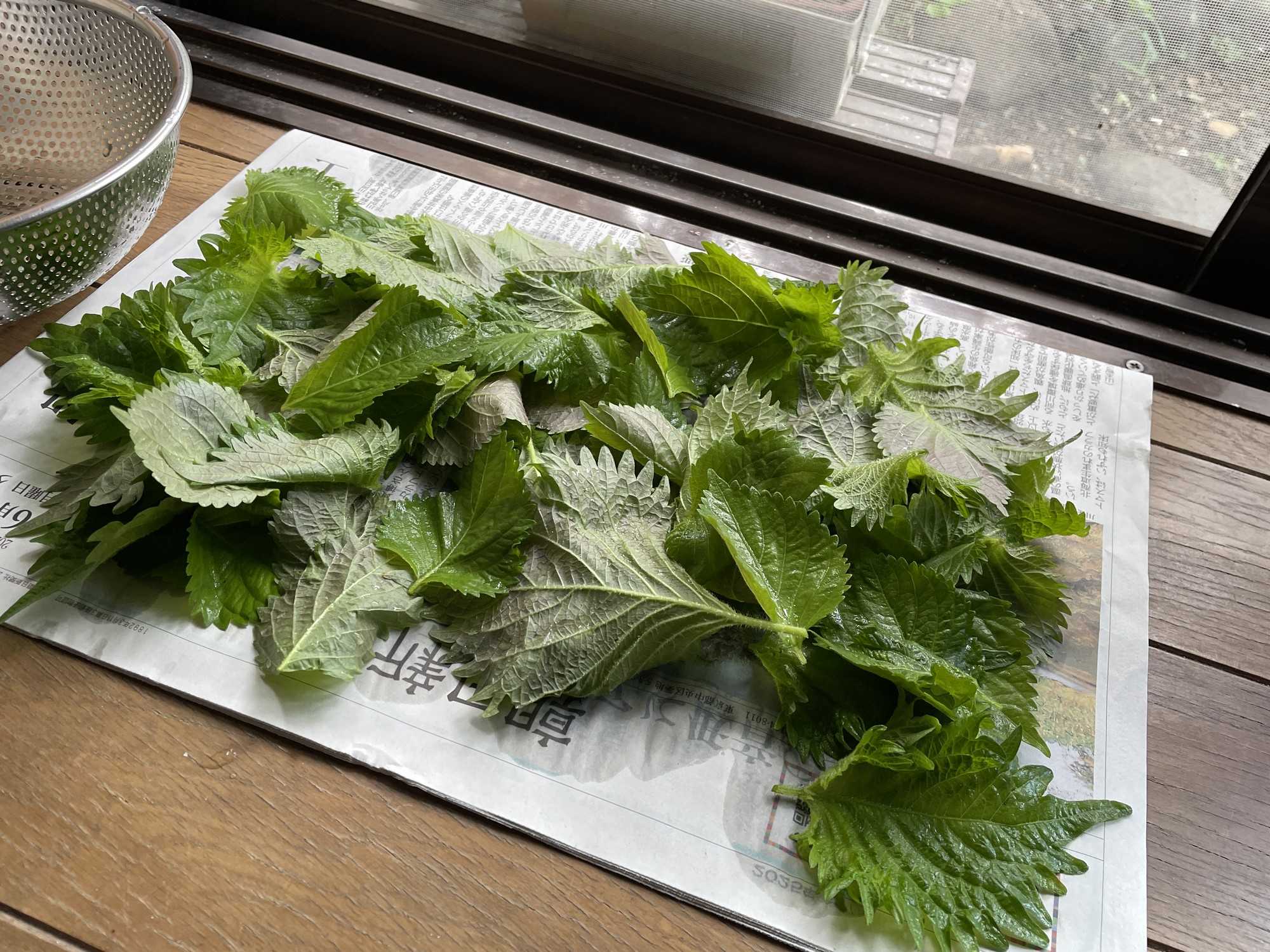 それを新聞紙の上に適当に広げ、風に当てて30分、余分な水分を取り除きます。