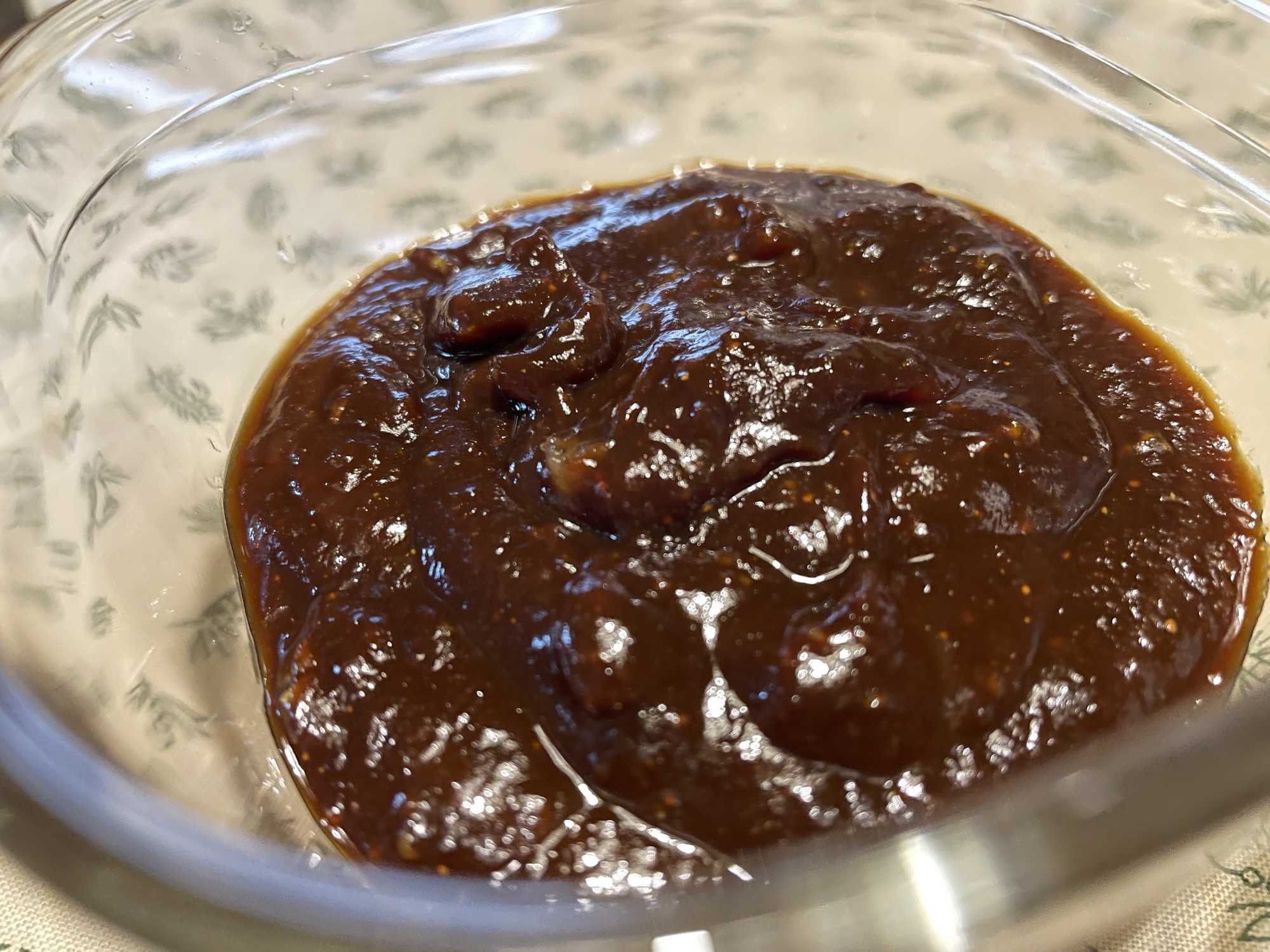 我が家の柚子1個が100gなのでそれに合わせて、赤だしみそ大匙3,砂糖大匙3を混ぜ合わせます。
