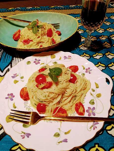 こちらは姪っ子(従妹の娘)がうちに来てくれた時に冷蔵庫にあるもので作ってくれたお素麺カッペリーニ。