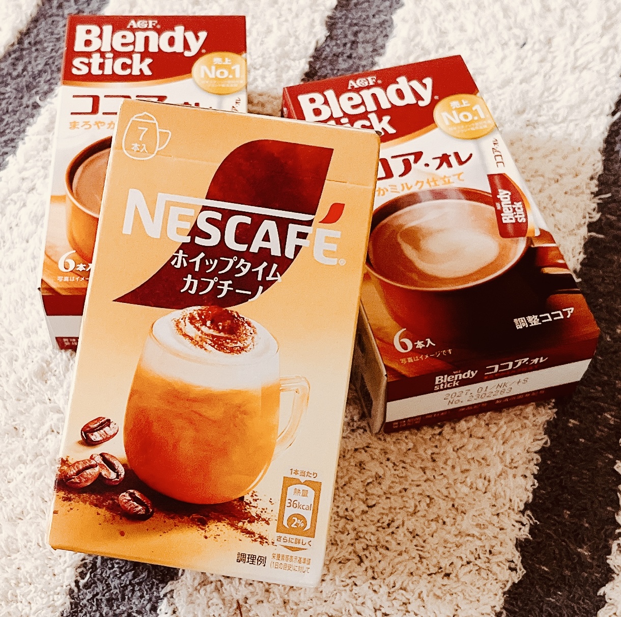 今日はお買い物行って、こちらを買ってきました。カフェラテにも飽きたので、新しい物を買ってみました。ココアは前から飲みたかったから二箱。カプチーノが結構たのしみであります。明日は友人と遊ぶのかな??まだ未定。今日はまだ一錠もカロナール飲んでないな。少しずつは良くなってるのかな!?もーわからん。痛い時はいっぱい飲んじゃうし。今日もあまり眠くないなぁ〜。疲れてないからか。はぁ〜あ、早く楽しみがある三月にならないかなー。