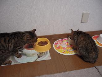 あけましておめでとうございます昨年は遊びに来て頂いたり、コメントを頂いたり、どうもありがとうございました今年もよろしくお願いします今日で三が日も終わりですねきじとらマンずにはお正月はまったく関係なかったようですがそれでも「お正月だから特別ね」の猫缶はうれしかったようです今朝のしゅうとはなのごはん風景です いつもより夢中で食べてます...が、横でじーっと見つめてるきじとら猫がもう一匹います ぎんです「ご飯だよ~」って言ってるのにベランダで遊んでたので、お皿に入れてもらい損ねちゃったんですねぇ「にゃー」とも言わず、ただただ悲しそうに自分の空のお皿を見つめてました