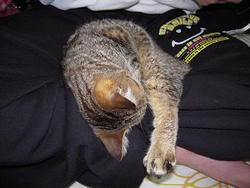 ゲームをしている次男の膝の上ではながよく寝てます 態勢が変わってもまだ寝てます落ちないようにしがみついて寝てます 中身がいなくなっても、まだ寝てる 白目むいちゃってるし 次男が好きなのかそのスェットが好きなのか火曜日、突然体中に発疹が出てびっくりしましたこの後熱が出てくるようならはしかか風疹かも?って診療所で言われてドキドキしてたんですが、どうやらアレルギー性の発疹だったようですよかった~~でもブツブツはすごいことになってます自分で見てもキモチワルイ次男に見せると気味悪がって逃げ回るのがオモシロイ昨日は一日寝倒しちゃいました