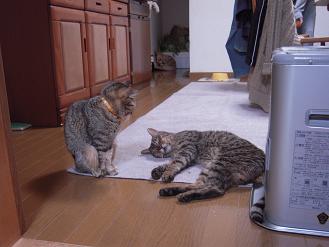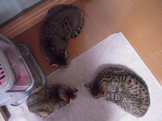 昨夜もストーブの前にきじとらマンずが集まっていましたストーブの真ん前にいるのがぎん、時計回りにしゅうとはなです 珍しく全員集合しています微妙な距離感を保ちつつも、平和な集会になってます ぎんが抜けたらどういう訳か次男が参加し始めました 毛皮の横に坊主頭...ミョーな取り合わせですねぇ