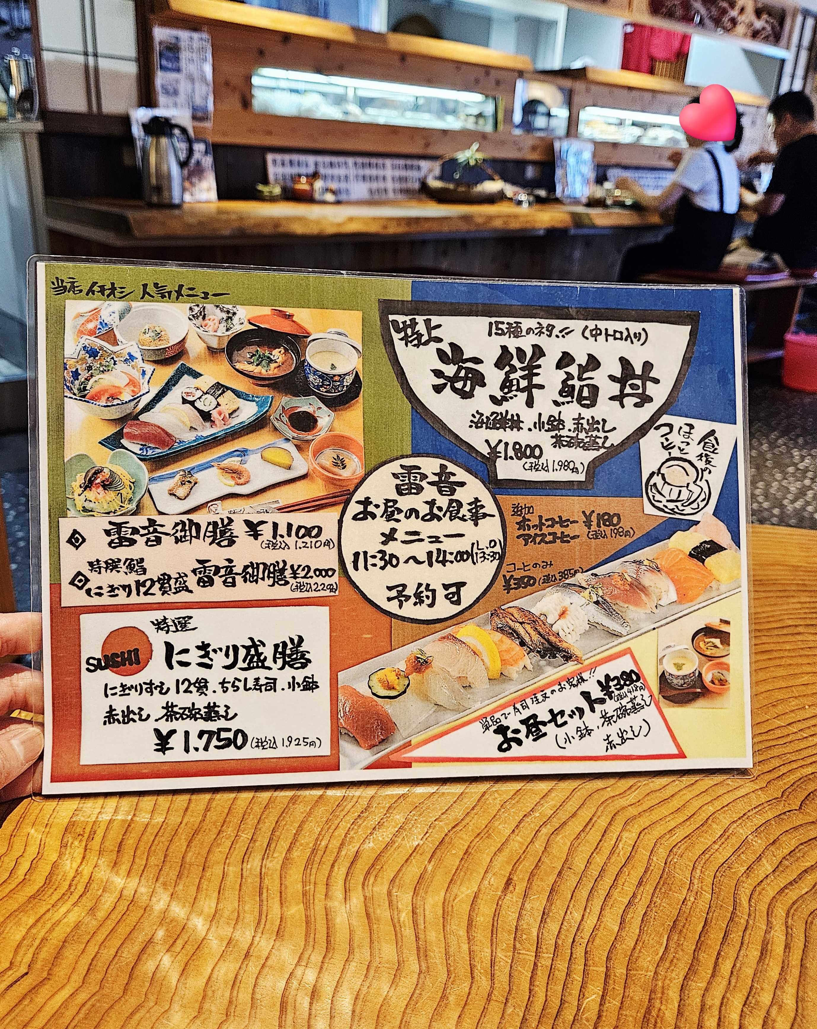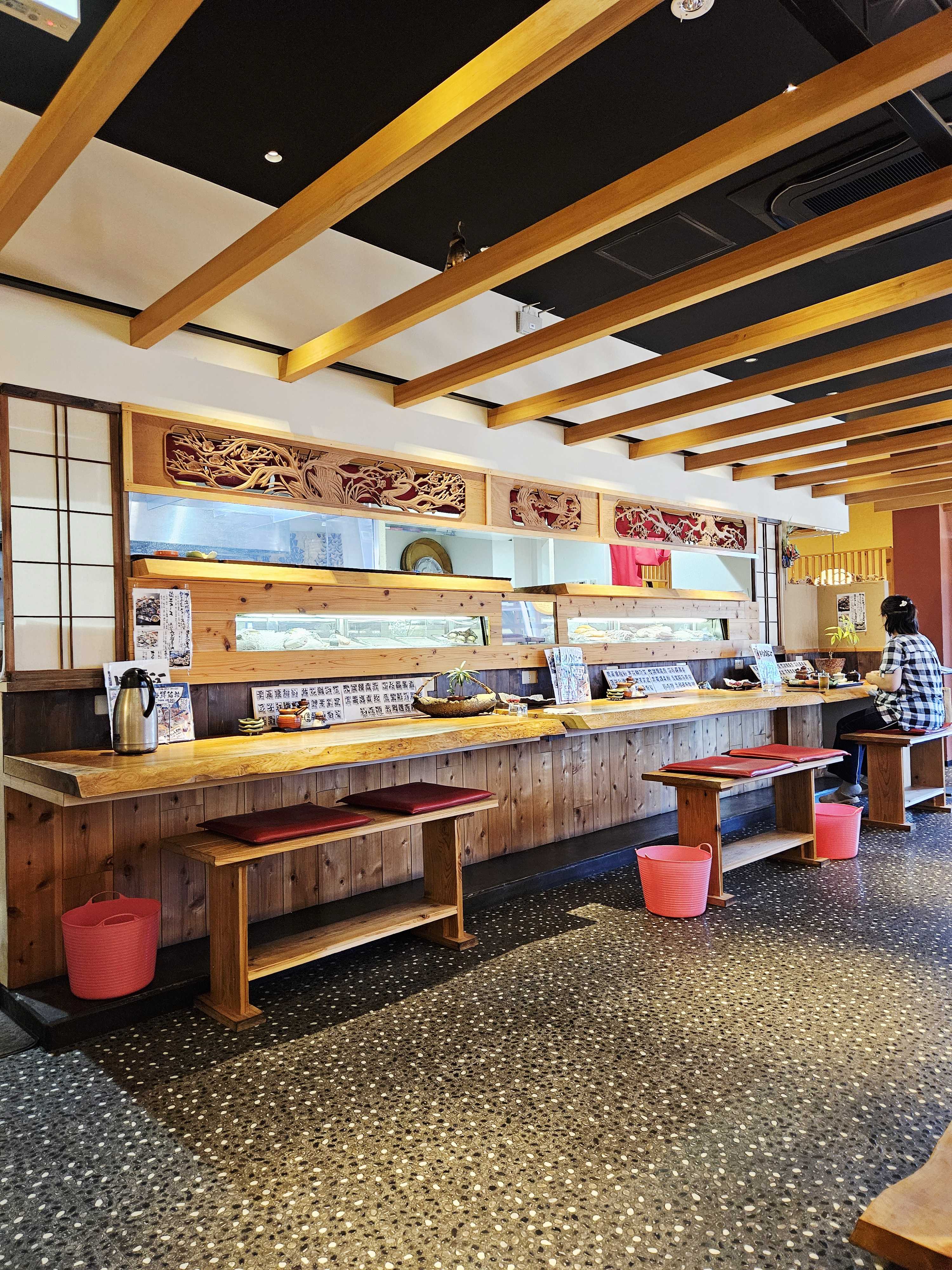 大衆おすし屋さんでランチカウンター席テーブル席はこんな感じランチメニュー入り口の天井にビックリ!👀ごちそうさんです(^o^)
