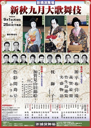 演舞場の「新秋九月大歌舞伎」(2008年9月)鏡山は実は3度目でした。最初は平成9年(1997年)の10月。妹が連れて行ってくれたので1階のはず。ということは、こんな感じ。ブログを書く前なので、意識して観ていなかった頃ですが、(今でもまだまだ、好きなだけ、で詳しくはありませんが(^-^;)勘三郎さんのお初。岩藤の罠にはめられた後、憔悴した尾上を気遣って「だんな様ぁ」「だんな様ぁ」とはげます声や仕草が今でもちゃんと浮かんでくるんだからサスガ勘三郎さんです。(この時はまだ勘三郎さんが勘九郎さんで、 仁左衛門さんも孝夫さん。 姫の警護の庵崎求女役が なんと新之助(海老蔵)さんでした。 前はお初たちの味方だったのに、 今回は敵の岩藤です。)幕が開いて、桃の花を手にした腰元達が花道から舞台へ。尾上方の腰元たちの鴇色の着物、ああ玉三郎さんの尾上の時と同じ。立て矢に結んだ黒の帯も、ああ鏡山!と懐かしい。「ランジャタイ」「アサヒノミダノソンゾウ」登場人物が何度も繰り返す不思議な言葉もおお、鏡山!最初に観た時は意味がわからないけど、歌舞伎独特の抑揚をつけた言い回しのおかげで、ランジャタイがなんであるかは実態がわからなくても筋についていける。後で「筋書(プログラム)」を読んで「蘭奢待」「旭の弥陀の尊象」などと、おさらいするのも、また楽し、です。海老蔵さんの岩藤は、ビジュアル的には仁左衛門さんの岩藤を思い出させました。メイクはそれほどで派手ではないけれど、セリフ回しは菊五郎さんが一番憎憎しげでした。お初は、三人ともそれぞれ健気でよかったけれど、今回の亀治郎さんのお初も、健気でいじらしく可愛らしくて目が離せません。玉三郎さん演じるところ品のある女主人の尾上。優しげ、柔らかな印象の尾上が、辱められて死を決意し、思い悩み手紙をしたためる姿、哀しげな様子が浮かんできますが、今度の時蔵さんの演技にも心を揺さぶられました。「鏡山」の幕間に食事。私たちは松茸ご飯に舌鼓を打って、すっかり幸せな気分に。さっきまでの緊迫したムードは忘れかけ…けれど席に戻ってすぐ、花道から現れた時蔵さんを見てハッとしました。ほつれ髪にやつれた表情で、部屋に戻る尾上。お気楽な私たちの横は花道。ほんの1メートル先に江戸時代の大奥がありました。江戸城の廊下のような錯覚を起しそうなくらいに尾上そのもので、すぐさま鏡山の世界に引き戻されました。ああ、この休憩時間の間も尾上の気持ち、集中を切らさず尾上になりきっていた時蔵さんを間近にし、私達、放心状態(*^^*)鏡山は上手(かみて)が岩藤側、下手(しもて)が尾上側に並びます。そのうえ、時蔵さんと亀治郎さんが何度となく花道を通るのでめったにこんな良い席に座れない私たちには何よりの演目。やみつきになりそう!もう、タメイキしかありません。お初が無事に主人尾上の仇を打ちめでたし、めでたしと「加賀見山旧錦絵(かがみやまこきょうのにしきえ」が終わると海老蔵さんと亀治郎さんの舞踊。タイトルに「豆」がつくし、ちょっと骨休めのようなものと勝手に想像していたら、大違い(^O^)「色彩間苅豆(いろもようちょっとかりまめ)」はこれまた見ごたえありで歌舞伎ってほんとに奥が深いしなんて楽しませてくれるものなんだろうと感慨ひとしお。海老蔵さん、ワタシ的には岩藤よりこちらのワルな色男・与右衛門のほうがよかった!亀治郎さんのかさねは愛らしい姿から、お岩さんのようなラストまでおみごと!ったらありゃしません。手の演技が特に素晴らしくて、お初の時から亀治郎さんの表情もさることながら、手が特に気になっていたらその手が物を言う、「連理引(れんりびき)」醜くなった哀れかさねを殺して、花道を逃げていく与右衛門。ところが、いったんは逃げおおせたと思われた与右衛門ですが、様子が変。なんと、かさねは手首をクイッと曲げ、見えない糸を引っ張るようしぐさで与右衛門を舞台へと戻すのです!!イヤホンガイドでは連理引、恨みを持った女性が裏切った男性を引き戻す遠隔操作と解説していましたけど、逃げおおせそうになるたび、かさねがクイッ。引っ張られて、花道を戻ったり、進んだり、何往復も。なにしろ、「見えない糸」「怨念」など抽象的なものに抗うシーンは海老蔵さんも演りにくいはずだと思うのですが、それだけに見どころ。演舞場の2階の桟敷席は花道が見えないので、スクリーンで見ることが出来るんですね。歌舞伎座にはないけれど。けれど、桟敷席の人は誰もスクリーンは見ず、直接下をのぞきこんでました。気持ちわかるなー。もう一回、観たくなりました!(そうそう、花道寄りの席は無理ですが)秀山祭九月大歌舞伎で亀治郎さんを観るのが楽しみです♪(新橋演舞場 新秋九月大歌舞伎 夜の部 9月10日)※ごめんなさい。最初にブログをアップした時、表の中の順番がズレていたのに気づかずにおりました。ただいま、訂正いたしました。ご親切な方が気づいて教えてください