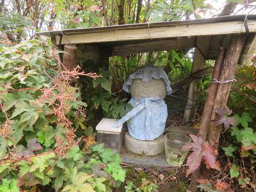 花が終わったシモツケソウに囲まれた、可愛いお地蔵さんにも手を合わせ