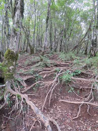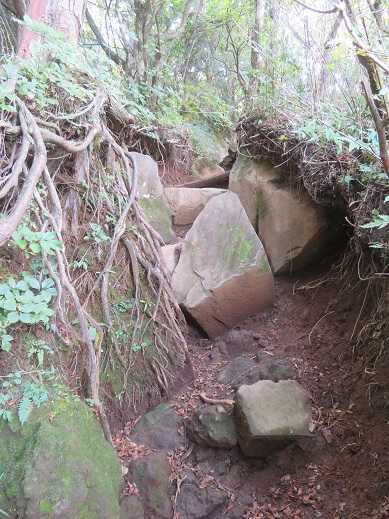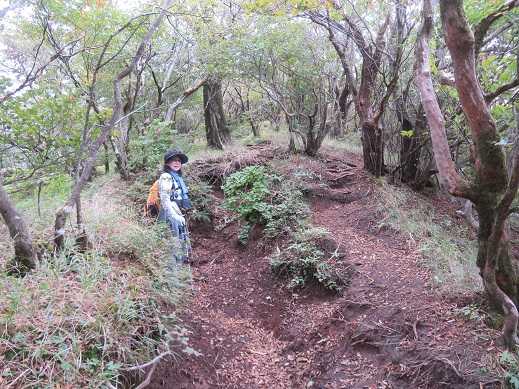 登山道が荒れてえぐれて、比較的歩きやすい道を選ぶのが大変です。