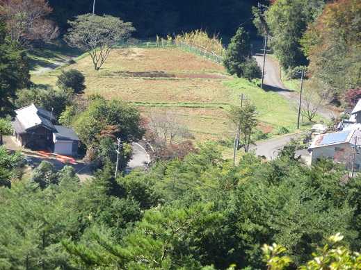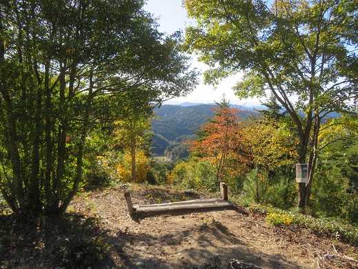 ベンチは壊れていますが、登山口のいろどりむらが下に見えています。