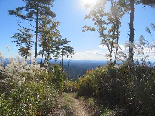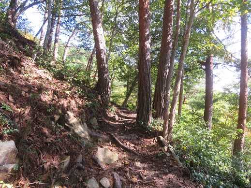 植林の尾根をジグザグにのぼり、右の方へ折れたら