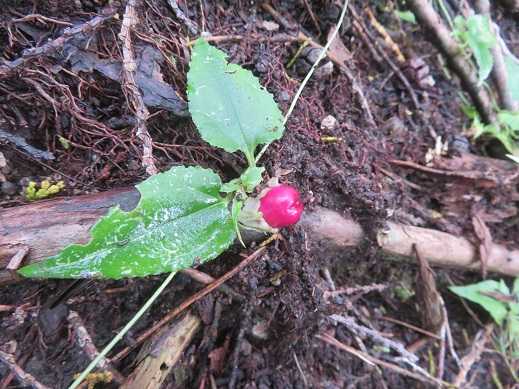 今日は花が無いので、ツルキキョウの赤い実でも目立ちます。
