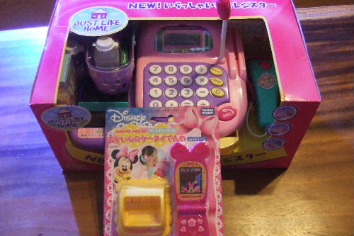 今朝からわて熱はないものの喉がめっさ痛いそして何だか起き上がると気持ち悪い・・・。先日からパパが体調を崩してたのでうつったのかなぁ?パパは仕事行くのが精一杯でホワイトDayのを買えずに居たのでようやく午後からお休みが取れたので綺子ちんを連れてお出かけ~☆トイザラスに行って綺子ちんにホワイトDayのプレゼントを買いに行きました☆3倍返しを期待して自転車買って~とけしかけさせたのに買ってきたのはコレ↓もう1000円高いマックのレジスター(ドライブスルーのインカム付き)をパパは勧めたらしいが綺子ちんはこのレジスターのがイイ!と言い張ったらしいっすやっぱ女の子ながやね~~~ピンクに弱いらしいっす。。。ところで・・・わてへのお返しのはドコっすか?1日ほぼ寝て過ごしたおかげで夜には起き上がれるようになりましたが喉がモーレツに痛いっす