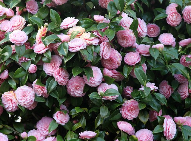 花が咲く時期はまるで椿の花の小山のよう・・・