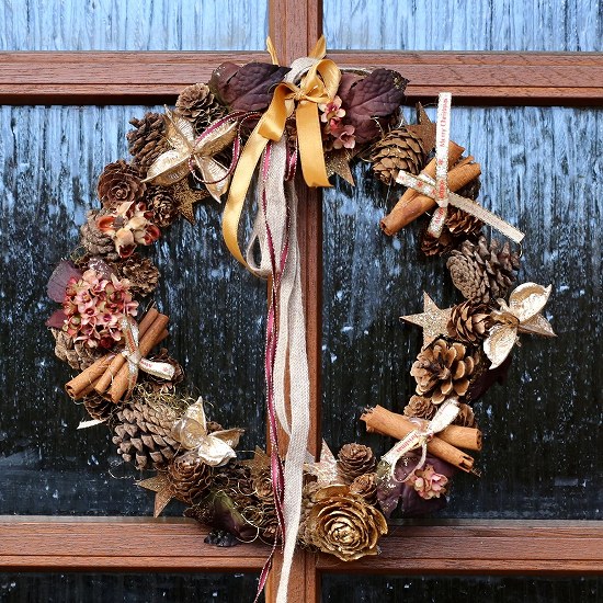 手際もよく、まん丸リースの出来上がり。
