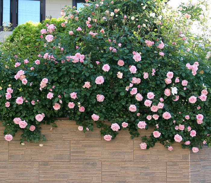 2020年の薔薇☆日本のミスターローズ作出、ピンクの大輪の優雅なつる薔薇、羽衣の全体像