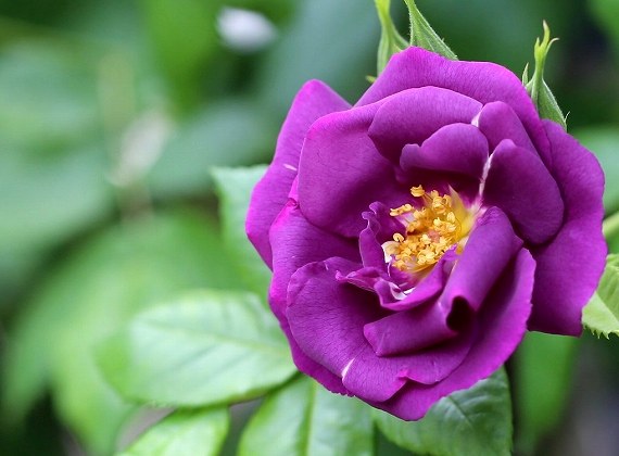 青・赤紫色で半八重のエキゾチックな薔薇、ラプソディ・イン・ブルー