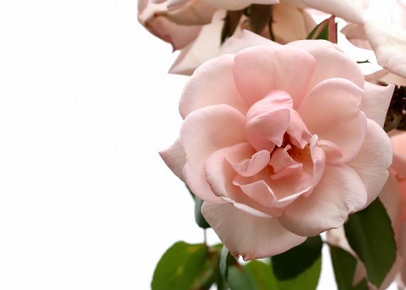 枝先のピンクの薔薇が儚げにみえるのは