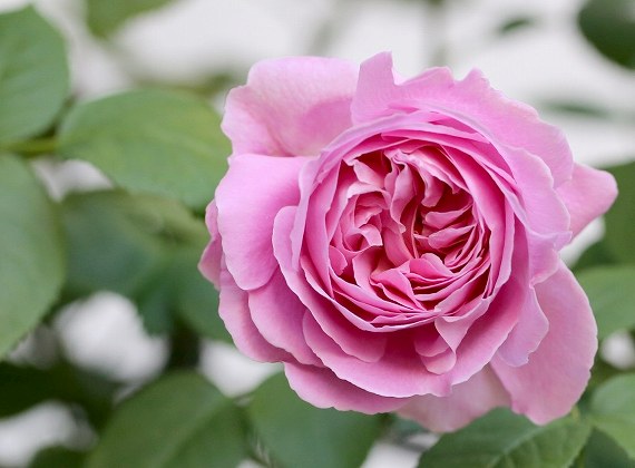 薔薇「メアリーローズ」元気なピンク色のさっくりとしたカップ咲き。