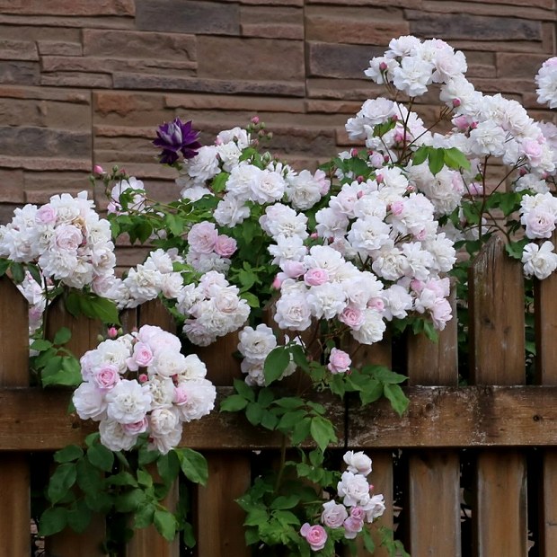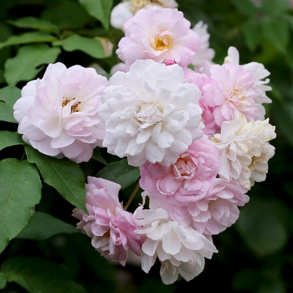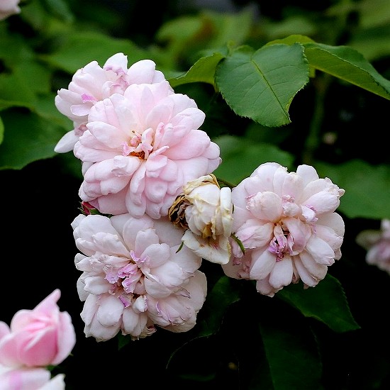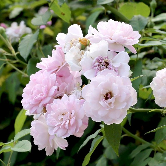 オールドローズで、房咲きに咲いてくれ香りの良い四季咲きの薇薔、ブラッシュ・ノアゼット
