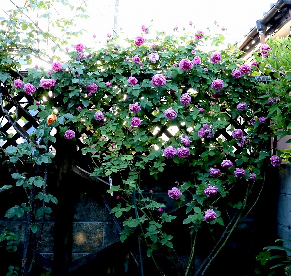 外壁に誘引用のネットまでご自分(女性)で梯子をかけ