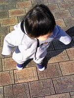 しばらくすると地面に興味を持ち、ハイハイを始めてしまいました。