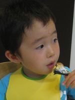 おいしかったらしく、パパにもさんまの頭をおねだりしてました。
