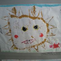 1年生最後の授業参観へ行ってきました写真の絵は、身近な物を使った版画で、ライオンの鬣は、洗濯場バサミを使ったみたい入選をいただきました