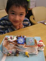 今年のクリスマスケーキは、Kooの希望により自作といっても、市販のロールケーキにデコレーションするだけ安いし、楽しいし、美味しいし大満足でした