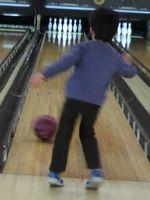 子供会の催しに参加しました。Koo、生まれて初めてのボーリングです対戦は、1年生同士。そのまま投げても良いし、まっすぐ転がる道具を使ってもOKプライド?のないKooは、道具を使ってばかりやっとそのまま投げました2ゲームで終了ですが、他の学年は全て終わっているのに、1年生は、まだ1ゲームも終わってない状態みんな、のんびりし過ぎ~