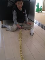 最近、ジェンガで遊んだ後に、必ずドミノ倒しをするKoo。こんな遊び方、どこで教わったんだろうKooに聞いてみると、「う~ん、わかんなーい。どっかで見たのかなぁ」との事でした。