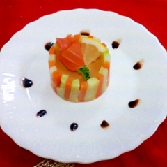 トマトと生クリームをゼラチンで固めただけなんですが~セルクルに野菜を立てて固めるとこんなにお洒落に仕上がりますセルクルがなければ牛乳パックを丸くして型にしてもOKですよ 是非おもてなしにどうぞ トマトのムース作者:気まぐれみけにゃん■材料(2人分)トマト / 大1個塩 / 少々生クリーム / 50cc:粉ゼラチン / 小さじ1/2:水 / 大さじ1人参 / 3cmブロッコリーの芯 / 1個分スモークサーモン / 2枚レモン / 1/2枚パセリ / 少々バルサミコ酢 / 50ccオリーブオイル / 大さじ2■レシピを考えた人のコメントおもてなしにピッタリですよ!詳細を楽天レシピで見る━━━━━━━━━━━━━━━━━━…↓↓ ポイントが貯まるレシピ サイト ↓↓>>最短約 30 秒!▼無料▼会員登録<<━━━━━━━━━━━━━━━━━━…