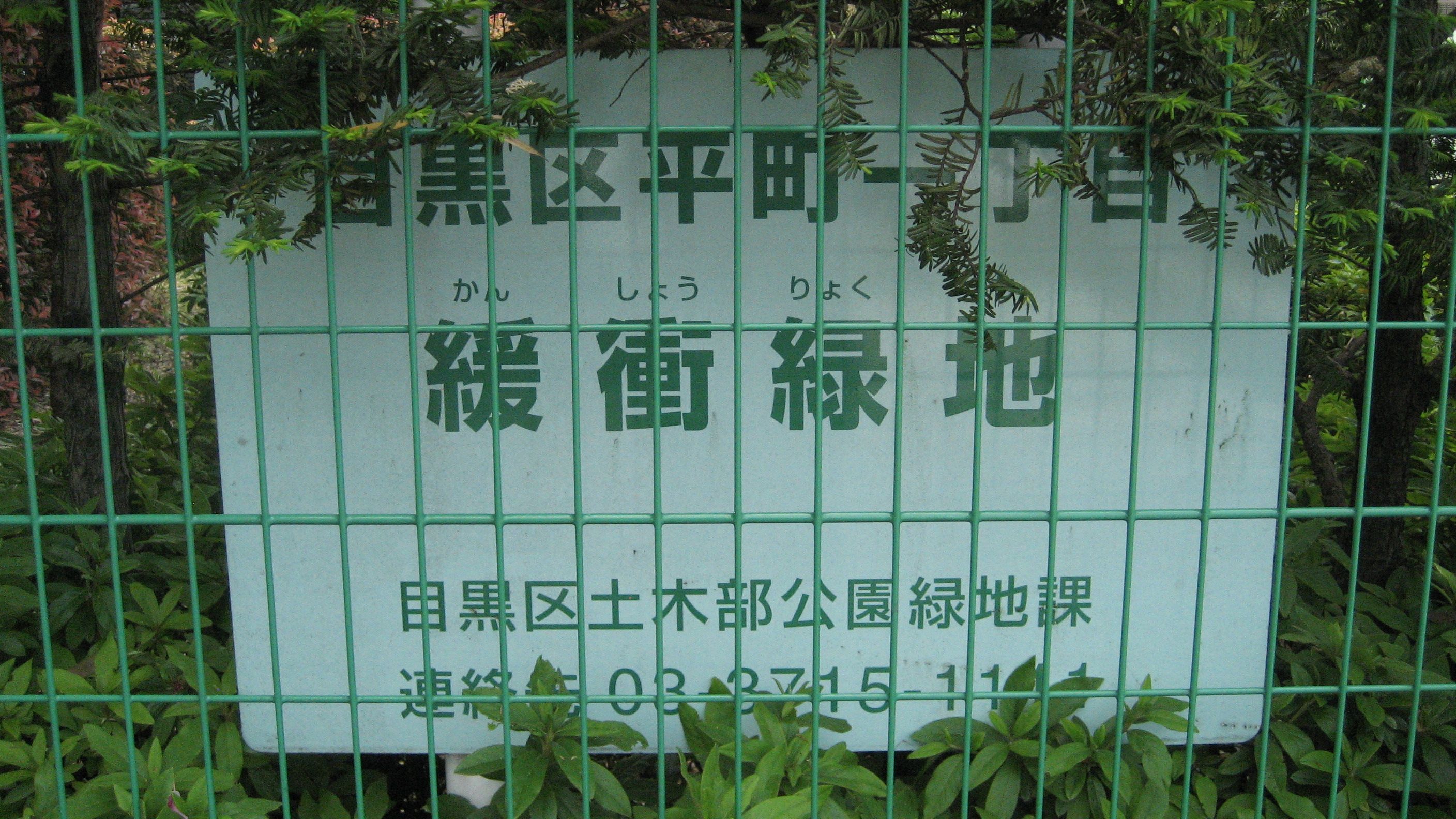 鑑賞ではなく、緩衝… 緩衝緑地=『住宅・商業地域での大気汚染・騒音・悪臭などの公害の防止・緩和や、工業地帯の災害防止などを目的として設けられる緑地』(デジタル大辞林)「土木部公園緑地課」となっているので区のホームページを見てみたが、組織・業務案内にはそんな部署は見つからない。そもそも組織案内には「課」ばかり並んでいて「部」は存在しない。「緑地課」はなく、それらしき組織として「みどりと公園課」があるが当該緩衝緑地の記載はない。土木に該当するのは「土木工事課」だが、道路工事や土木計画らしく無関係。 看板の連絡先は区役所の代表番号……普通なら同課の直通を表記すれば良いのに……(現在の各課係には異なる専用電話番号がホームページには記されている)……いちいち代表番号から係にまわさなくても済むことであり、最初に受けた職員に余計な仕事をさせることにもなる。 聞いてみようかと思ったが、通話料がもったいないので止めた。いずれにしても看板が古いままなのかもしれないが、誰が管理しているのやら… 一般的に緩衝緑地は、工業地帯、工場、空港などの近くに設けられるらしい。区内には清掃工場の脇に<目黒清掃工場緩衝緑地>が存在するが、こちらは広々としており、尚且つ一般に開放されていて犬の散歩や子供たちが遊ぶ姿が見受けられる。 方やこの写真の緩衝緑地はフェンスに囲まれ、立ち入り禁止の様子。数種類の樹木が綺麗に手入れされているが、なんの緩衝なのか? 環7に面していて交差点の一角ではあるが、あまりにも小さいこの緑地の存在意義が私には少々理解しきれない。車の騒音や振動、排ガスの緩衝だとすると、環7沿いにずーっと並び立つ家屋はさながら<緩衝家屋>として犠牲になっているのだろう。 真裏に住まわれている方にとっては、誠にありがたい存在であろう。我が家の庭に見えるかもしれないし、緑を楽しんでおられるかもしれない。逆に「枯葉が落ちて困る」とか「夏には虫が多くて嫌だ」なんて思っておられるやもしれない。 樹木の剪定など管理費もかかるはずだが、財政難にある区が如何様な目的でこの土地を保有し続けているのか、機会があったら役所に尋ねてみよう。全く買い手が付かない、と言う訳ではないだろうし……