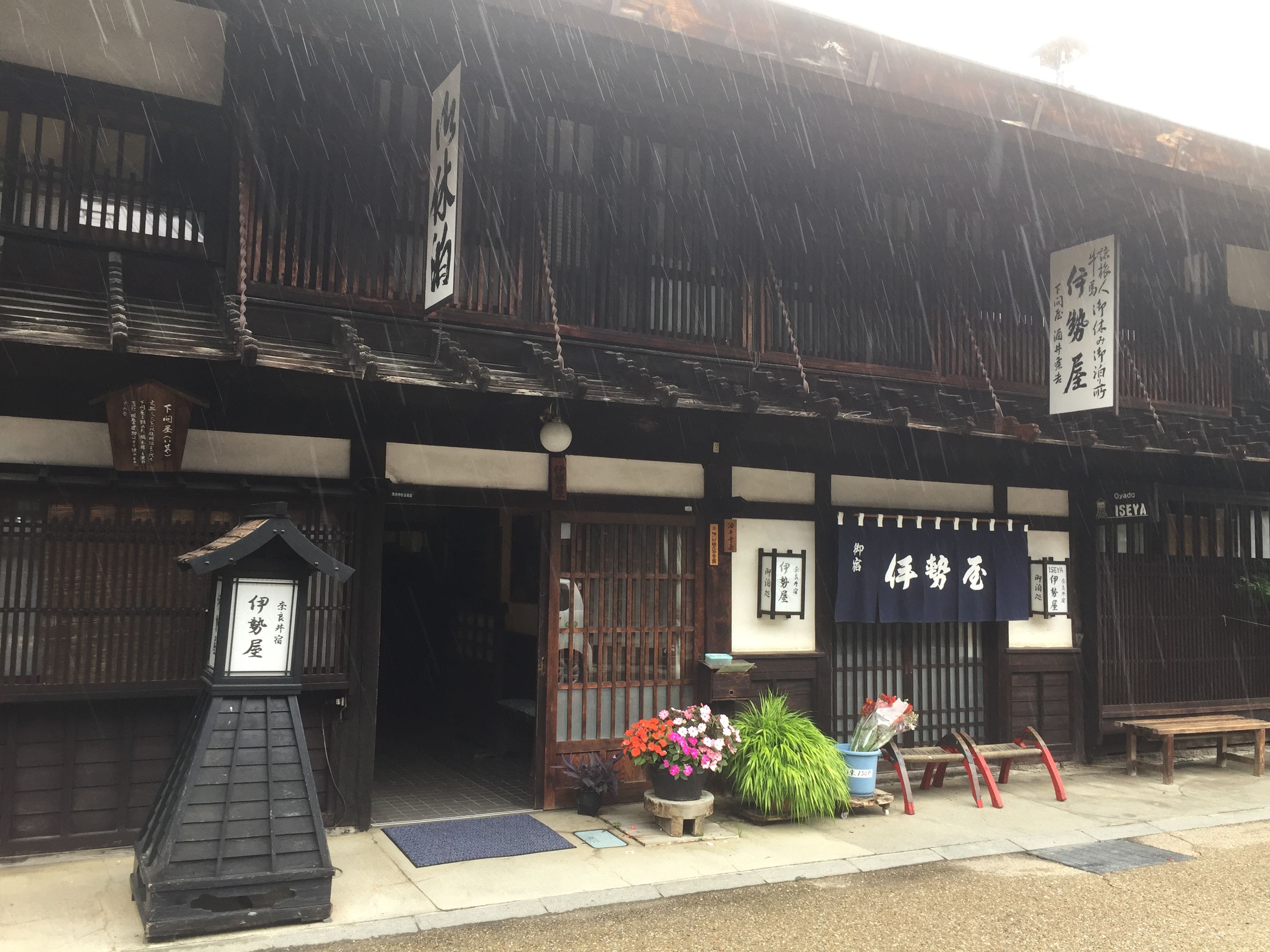 初 恋 島崎 藤村 まだあげ初めし前髪の 林檎のもとに見えしとき 前にさしたる花櫛の 花ある君とおもひけり やさしく白き手をのべて 林檎をわれにあたへしは 薄紅の秋の実に 人こひ初めしはじめなり わがこゝろなきためいきの その髪の毛にかゝるとき たのしき恋の盃を 君が情けに酌みしかな 林檎畑の樹の下に おのづからなる細道は 誰がふみそめしかたみぞと 問ひたまふこそこひしけれ 高校時代に習った藤村の「初恋」……純粋な恋心を詠んだものと思っていたのだけれど、今こうして写してみると違和感があります。「禁断の果実」を食べて恥じらいを覚えたアダムとイブ……イブがアダムに勧めたように、大人の仲間入りをした女性が青年に林檎を差し出すなど、なんともエロスを感じてしまいます。「わがこゝろなきためいきの その髪の毛にかゝるとき…」って、ものすごーく至近距離……今風の壁ドンってところでしょうか、ドキドキしますよね~「林檎畑の樹の下に……誰がふみそめしかたみぞと 問ひたまふこそこひしけれ」……幾度も二人で密会場所に通い固められたことを承知しながら、わざと「誰が?」と青年に問いかける小悪魔的要素を既にそなえた女性を思い描いてしまいます。 さてさて、別に藤村ファンであったわけではないのですが、40数年前に彼の生まれた地に行ったことがあります。学友三人で奈良井の民宿に2泊して、近隣をブラブラしましたっけ。鳥居峠も歩いたし、馬籠~妻籠も訪問しましたが残念ながら記憶はほとんど残っていません。 五平餅が私の口には合わなかったことと、宿の玄関先に泥を吐かせるために綺麗な水に入れられた鯉……夕方になると太い棒で頭を叩かれ「鯉の洗い」となって食卓にだされた、ということは鮮明に覚えています。鯉の洗いは今でも食べられますが、酢味噌ではなくワサビでなくちゃダメな私です。 この旅行から帰った後、藤村の「夜明け前」を読みました。「木曾路はすべて山の中である」…明治を生きた青山半蔵の生き様……今度改めて読んでみましょう。きっと違う思いを抱くことでしょう。 当時泊めていただいた「伊勢屋」……条例で保護されているので、面影はまったく変わりません…この記憶はしっかりしています。 (撮影者:連れ合い 撮影日:2017.7.25) お袋の希望で「信州阿智村で星空を楽しむ」という1泊旅行に連れ合いは同行しました。その帰りに奈良井宿に寄った際、写真をお願いした次第です。(40数年経っていても屋号・伊勢屋を覚えていた私は偉いと自画自賛です) 残念ながら星空は雨でダメだったそうですが、奈良井でも雨が降り出したって……でも上の写真は広重風で雨が似合います。やっぱりiphoneは綺麗に撮れます…私の年代物スマホとは画素数も大違いですものね~