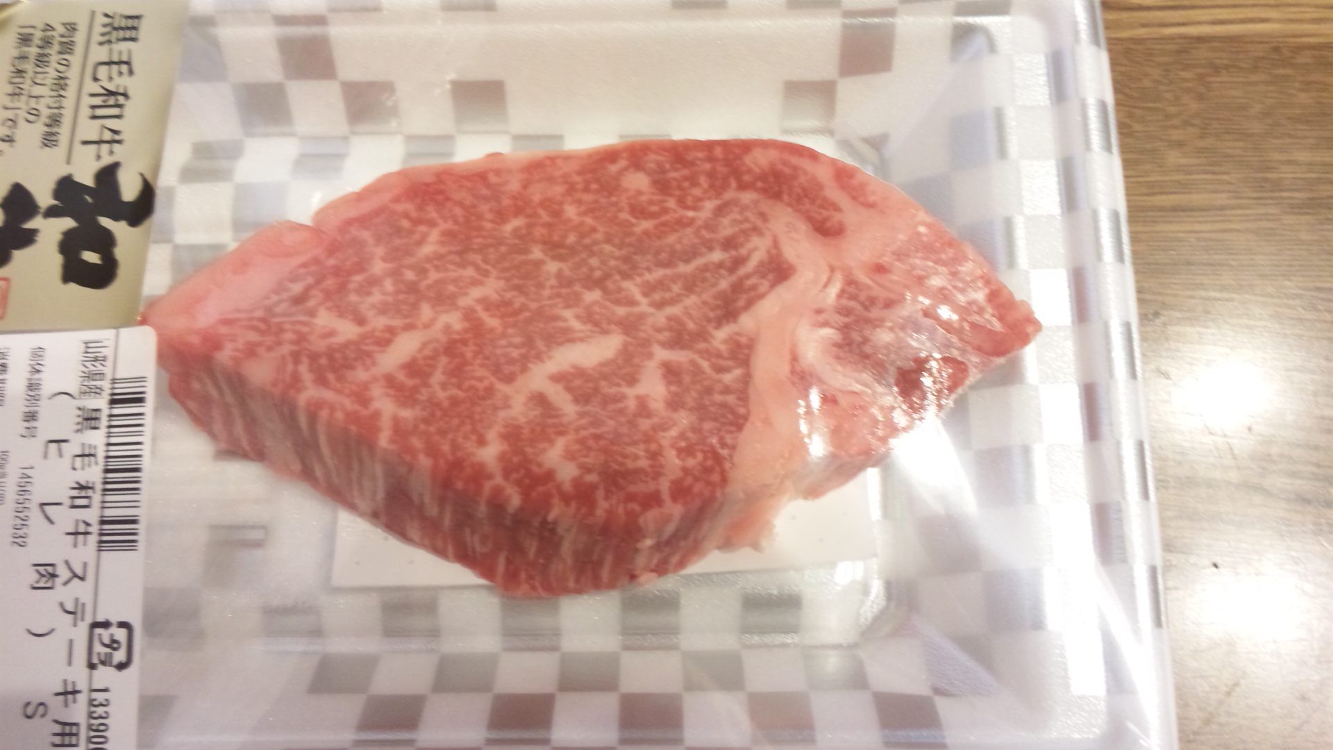 私の記録が正しければ、2015年2月26日に購入して依頼の食材です。 記録に間違いはないはずだしつまらないことをメモし続ける自分に感心するけれど、政府官僚や大臣たちもチャンと記録を付けなさい……「記憶にない」「覚えていない」をくり返す物覚えのとことん悪い方々なのだから… 愚痴はさておき、先日駅前のスーパーで見かけてしまった和牛ヒレ肉……勤めをしていたころは偶に買って家族にもお裾分けをしていた食材です。ロースよりもヒレ(大阪では ヘレ と言います)の方が好きなのですが、なかなか並んでいなかったのですっかり忘れていましたが偶然にも発見してしまいました。別の物を買いに入ったのですが、見て見ぬ振りができず「贅沢やな~」と思いながらもカゴに入れてしまった次第です。「まぁ、たまには良いか~ 居酒屋で飲むより安いものね~」ってな感じです。 山形産とのこと……103g……2パック置いてありましたが、両方とも103gでした。良くぞちょっきり揃いましたね~ と妙に感心至極の私…… それでもって、ちょちょいと酒のツマミ……おろしたニンニクを醤油と酒少量でのばし、肉のまわりに塗って30分放置……下味を染み込ませるためでもありますが、冷蔵庫から出した肉を常温に戻してから焼いた方がよいので放置しています。 焼くのは魚焼きグリルを使用……ヒレなので油は多くありませんが、グリルだと適度に油が落ちてくれますし、表面に付けたおろしニンニクもいい具合に炙られるので、私はフライパンよりグリルです。 贅沢しちゃいました……ご馳走様でした~