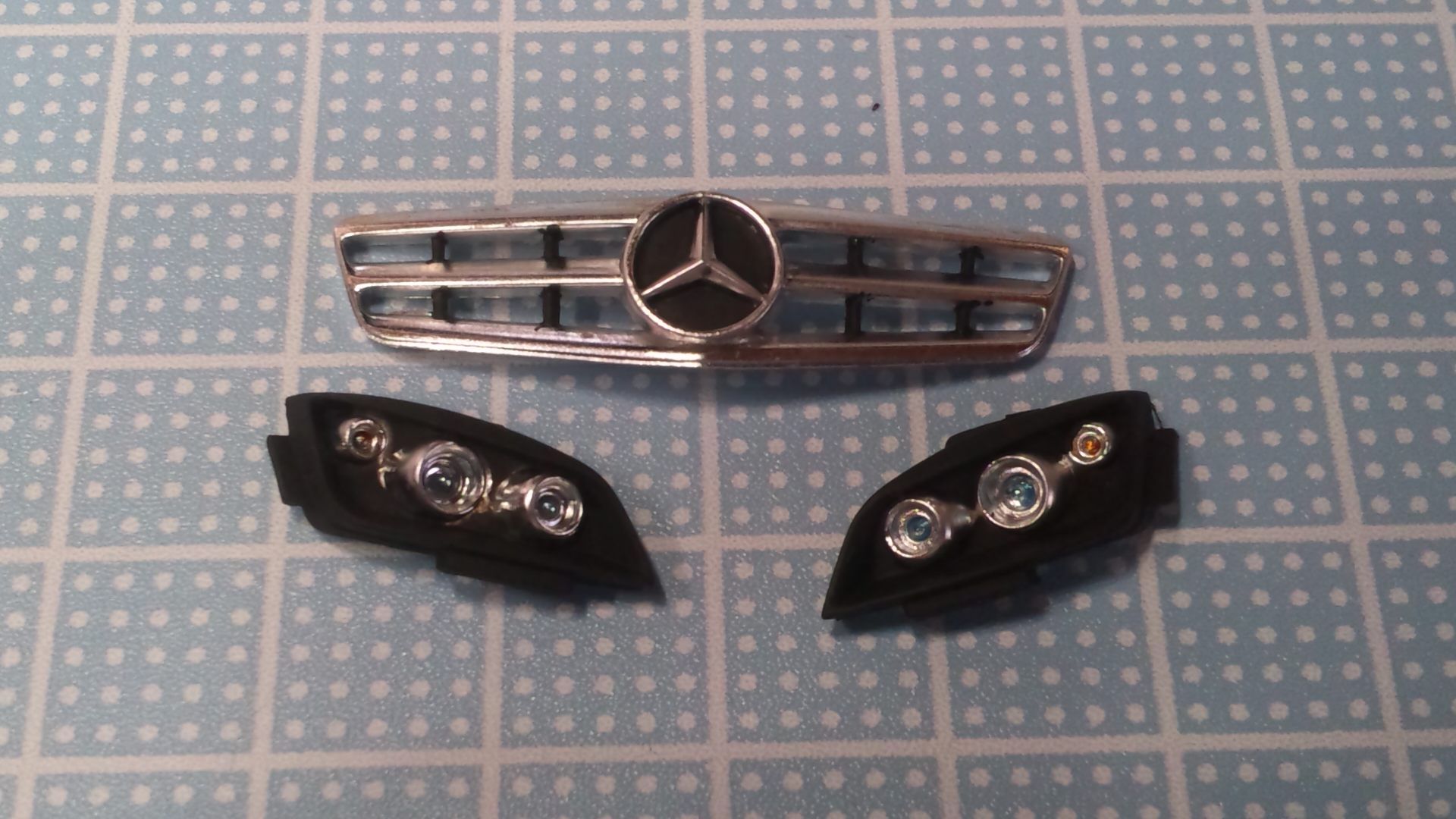 Trilux AMG Mercedes C-klasse DTM 2009 相変わらずノロノロと進行中です。 暑いし、風の日が多かったので難儀しています。 窓枠のマスキング……ドイツレベルにはマスキングシートは入っていませんので、自力です。タミヤを始め、楽な国産メーカーばかり作っていると面倒ですが、これもまた作る楽しみなのかもしれません。 でもって塗りました…… テールランプもクリアーレッド、塗っておきました。 ドアノブ……4ドアだから当たり前ですが、小さいのが4つ……中々精度の良いはめ込みの出っ張りが付いています。ボディーの穴は、クリアーでふさがり気味なのでピンバイスで少々広げないと収まらないです。ノブも凸部はあえて無塗装です。 上記のようなことをやりながらクリアーが乾くのを待って、サンドペーパーかけました。レベルのデカールは薄いので大きな段差はできませんし、そもそも暑さにめげているのでいきなり2000番でシュシュシュっと削って終わりにしました。ちなみにさっき最終クリアーを吹いてしまいました。 フロント周りのメッキパーツ……剥がそうか? 剥がすまいか? 考えていましたがこのまま使ってしまうことに決定… でもって、部分的に黒塗装をするのでマスキング……始めてはみたものの腰が痛くなりそうなのでここで止めました。先週金曜日に、座っていてぎっくり腰になりかけ……と言うか初期のぎっくり腰……さほど長時間ではないのですがじっと同じ姿勢で危ない状態ですから、無理はできないのであります。そのうちにやりましょう……