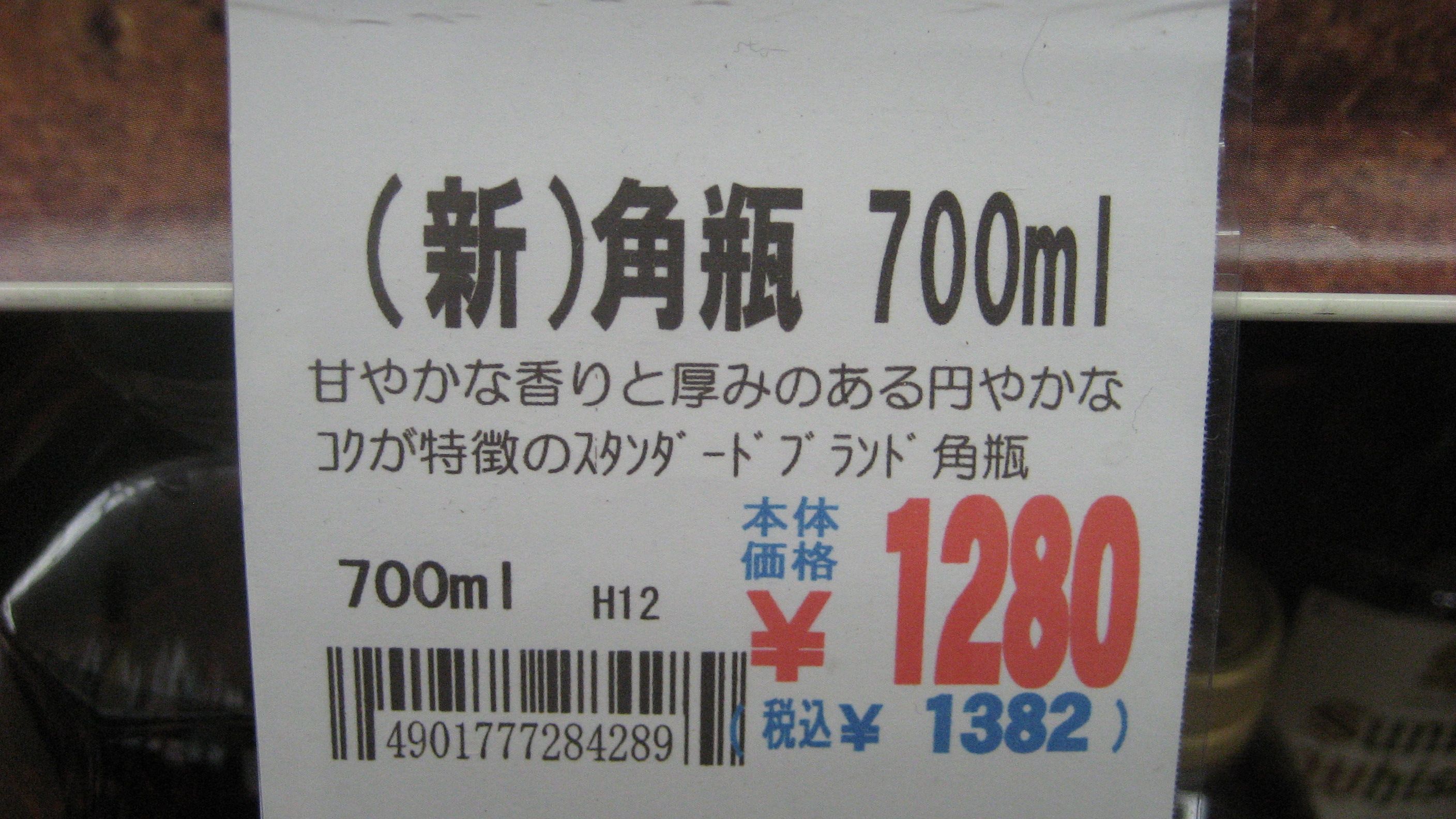 先日いつものリカーショップで、店員に勧められて購入した角ペットボトルが割高だったので、改めて検証してみました。 メモするのが面倒で、写真を撮りました。まがっているのは、たまたま補充作業の最中らしく、棚の前に台車や箱等障害物があったためです。 異なる容量の5種類を、1000ml=1ℓあたりの値段に換算してみると… (容量) (税込本体価格) (1ℓあたり) (700mlを基準とした差) 700ml 1,382円 1,974円 ------ 1920ml 3,974円 2,070円 +96円 2700ml 5,054円 1,872円 -102円 4000ml 7,214円 1,804円 -171円 5000ml 8,618円 1,724円 -251円 確かに2.7L~5Lは段階的に割安になっていますが、私が買ってしまった1920mlだけは恐ろしく割高という結果が得られました。おかしなことですが、店が知っていてわざとやっているのでしょうかしら? 一番割安な5Lにしたいですが、5㎏をぶら下げて歩いてくるのは辛い。背負子があれば良いのでしょうが……詰め替えるのも面倒なので、今後も700mlの瓶にします。 サラリーマン時代にはほとんど気にしなかったのですが、辞めてから主婦らしい私です。昨日、7-11で[いろはす・りんご]を見かけたので割高と知りながら買ってみました。さっき東急ストアに寄ったらあるではありませんか。7-11は117円、東急は92円(どちらも税込)…1本25円ですが積もると大きいです。6~7本でエナメル塗料が1瓶買えちゃいますから……と、主夫の鏡みたいだと自画自賛の私であります。