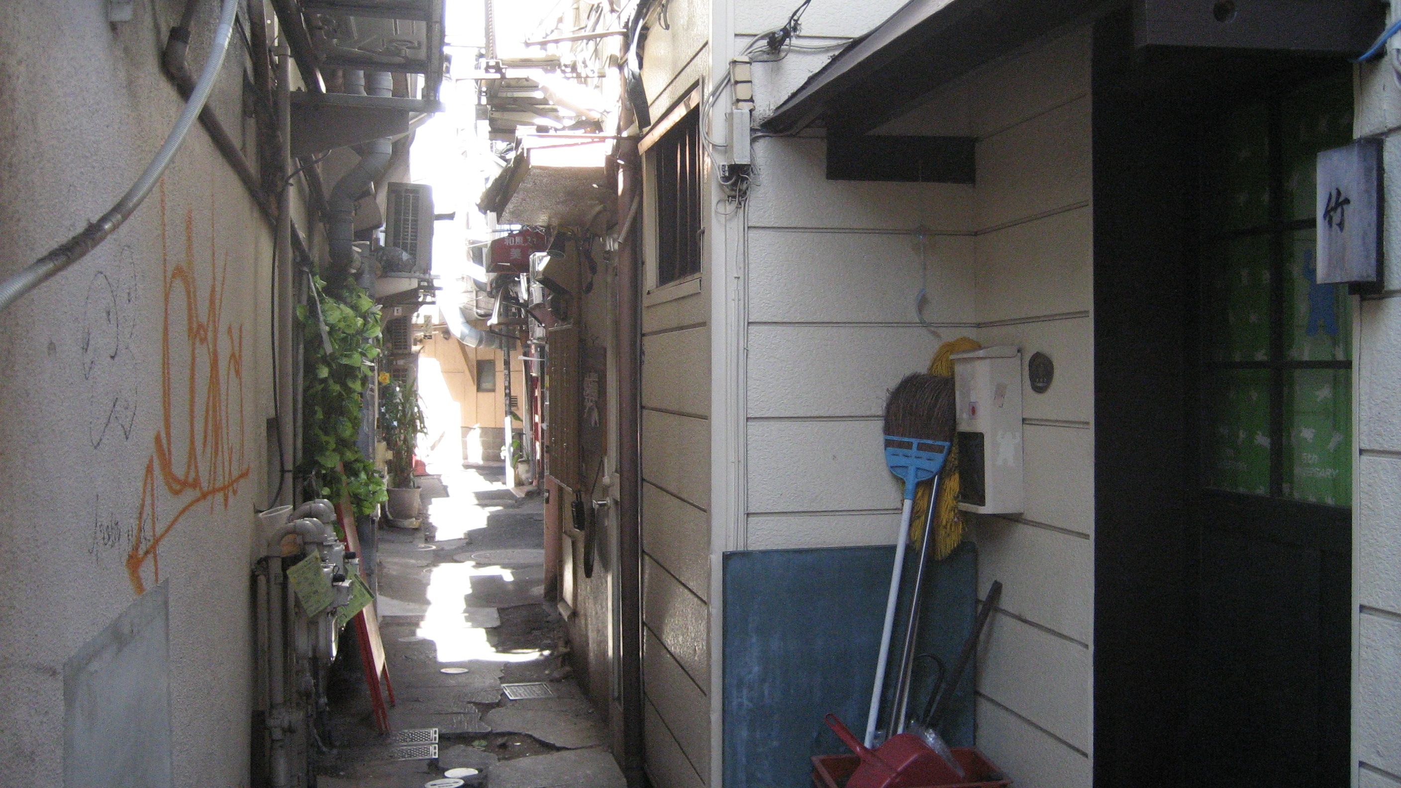 2軒の真ん中(写真の真ん中)も路地に繋がっています… 夜散歩なら確実に引き込まれます…
