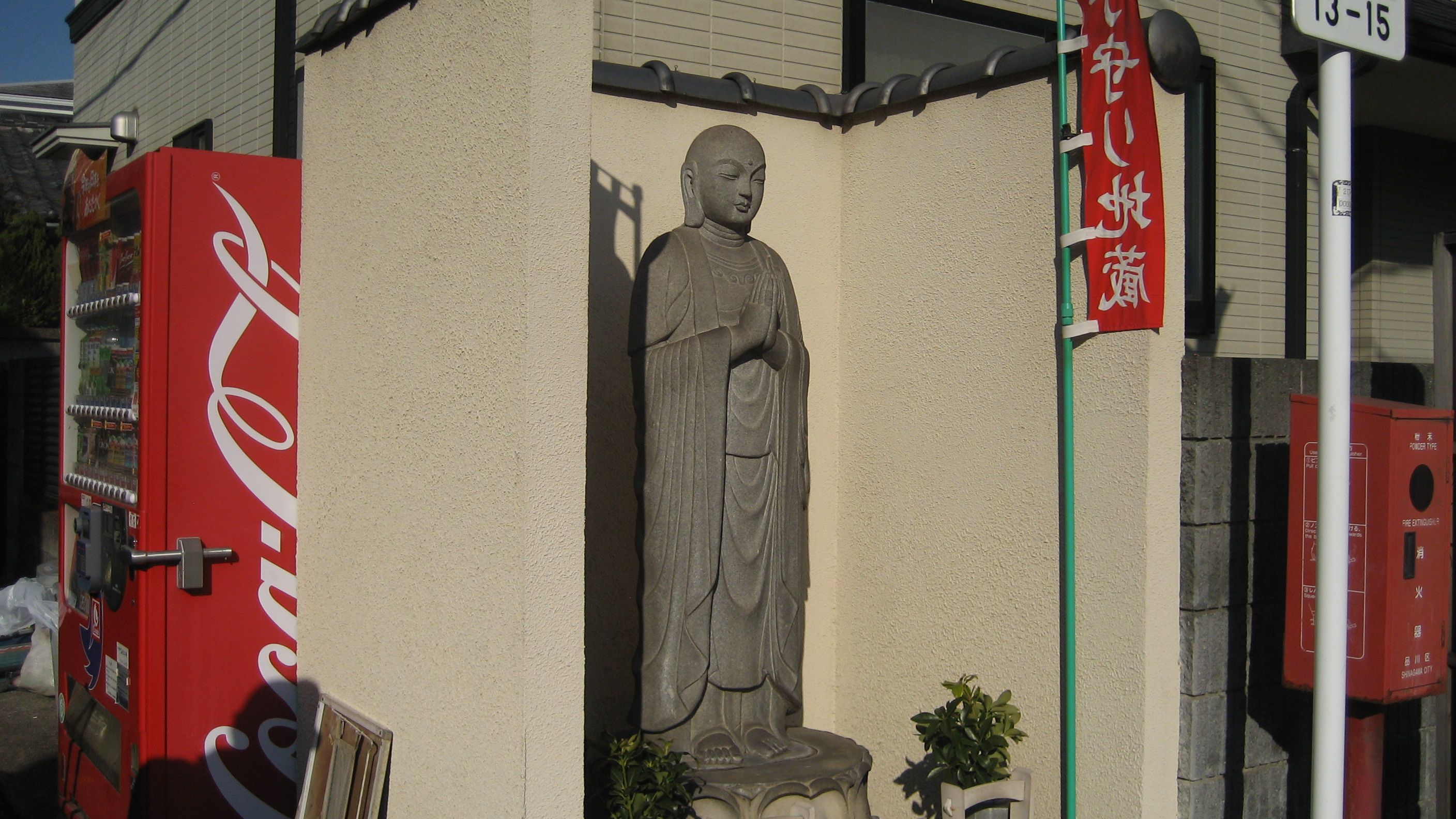 <地蔵> …光取寺の地蔵尊のようです……工事はやっていましたが、端だったのでお願いしてポールをまたいで撮らせてもらいました…なんとか掘削場には落ちませんでした… 狭い通りの角にあります…自動車がぶつかりませんように…落書きされませんように・・・
