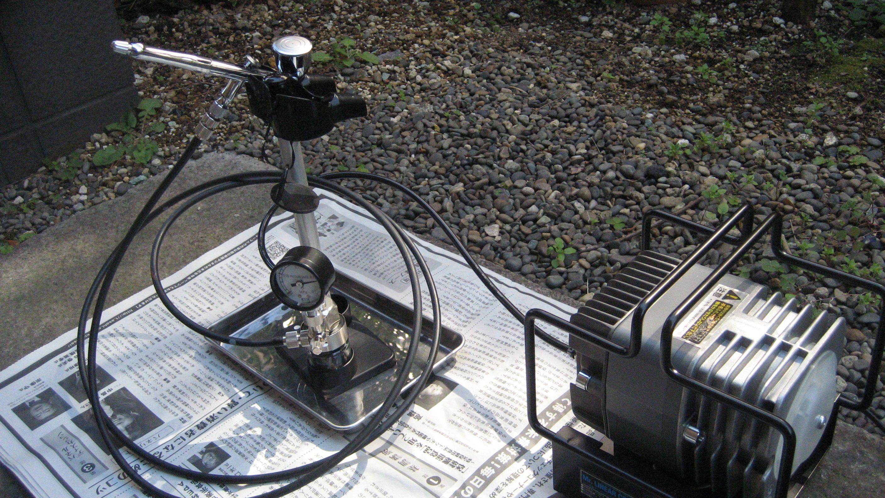 2014年5月2日に星野さんから引き取ってきた コンプレッサー です。それ以前は缶スプレーが主体でした。エアーブラシは持っていたのですが、エアー缶で事足りる程度しか使っていませんでした。