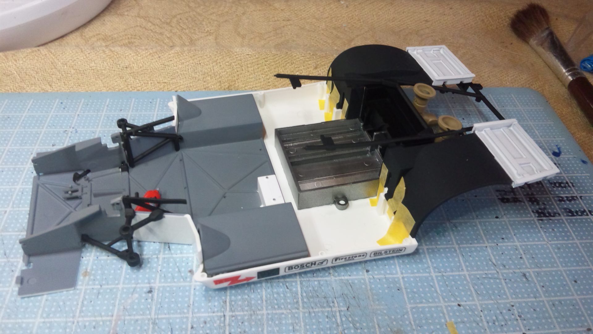 室内パーツ等も後で付けます。万が一 飛沫が付着すると嫌なので…