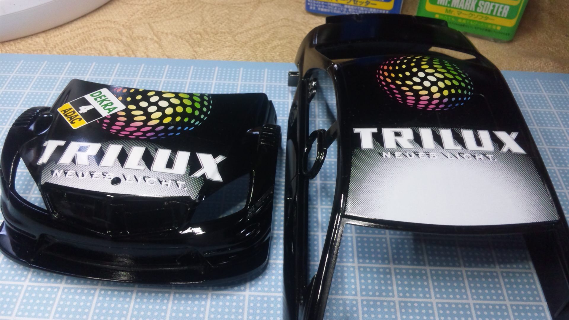 私の知る限り、ドイツレベルのデカールはいつも薄いです。極薄なので折れる心配はありませんが、綿棒を転がして水抜きする時に折り重なってシワになる事に注意が必要です。筋状に重なると剥がすのが面倒です。柔らかいので軟化剤も良く利いてくれますが、マークセッターやソフターは最低限の使用にしたいです。車体色が黒なので汚れが目立ちますから……乾いてから水で拭き取りますが結構しつこいです。