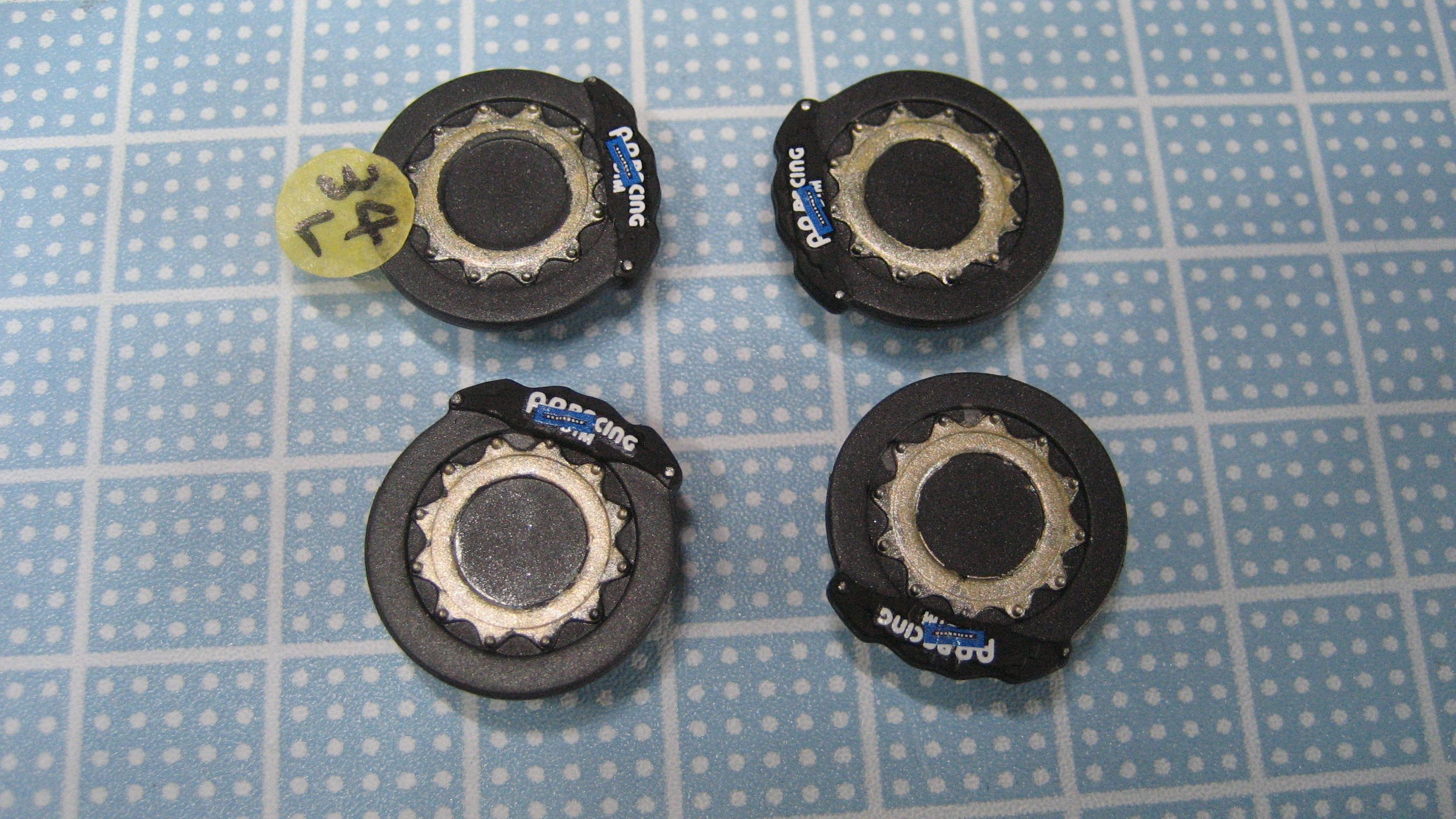キャリパーのデカールも貼ってやりました。省略しようとも思ったのですが、やっぱり性分ですね~  筆塗り部分は適当です……真剣にやり過ぎると目に悪いですし、眼圧が高いので来週の検査にひっかからないよう用心しています。