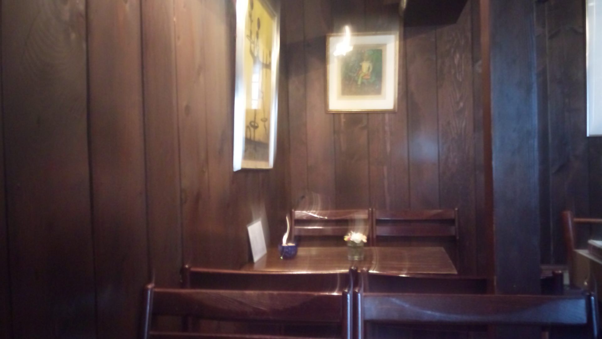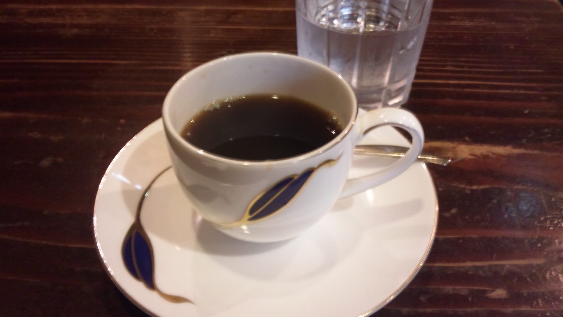 待っている間に、テーブルに置かれたメニューを見たらブレンドは3種類(浅煎り・中煎り・深煎り)あることを発見した。黙ってブレンドと言ったのだから「おそらく中煎りだろう」との推察通り、運ばれてきた時に尋ねたらやはり中煎りとの答えだった。まろやかな味と香りの中にほろ苦さのジャブが利いていて、なかなか美味しい珈琲だった。