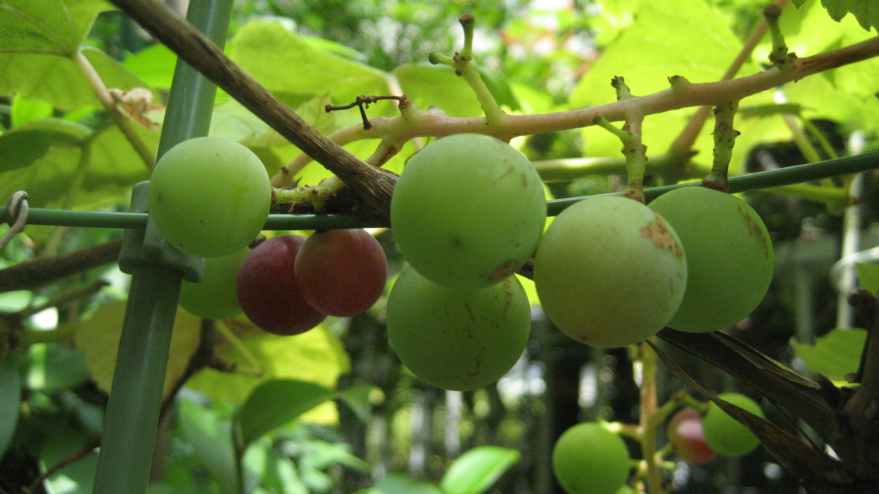 キャンベル……ずいぶん大きくなりましたが、成長過程で結構落ちてしまいます。おまけに、トマト同様 こちらもなかなか紫色になりません。味見はまだしていません。