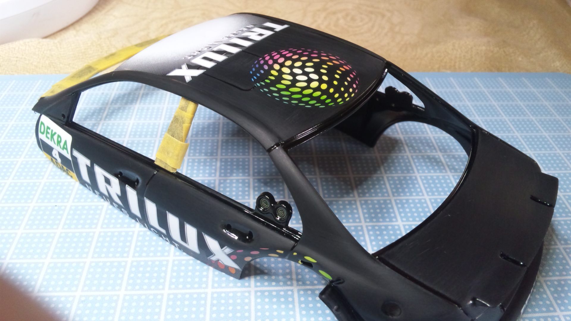 上記のようなことをやりながらクリアーが乾くのを待って、サンドペーパーかけました。レベルのデカールは薄いので大きな段差はできませんし、そもそも暑さにめげているのでいきなり2000番でシュシュシュっと削って終わりにしました。ちなみにさっき最終クリアーを吹いてしまいました。