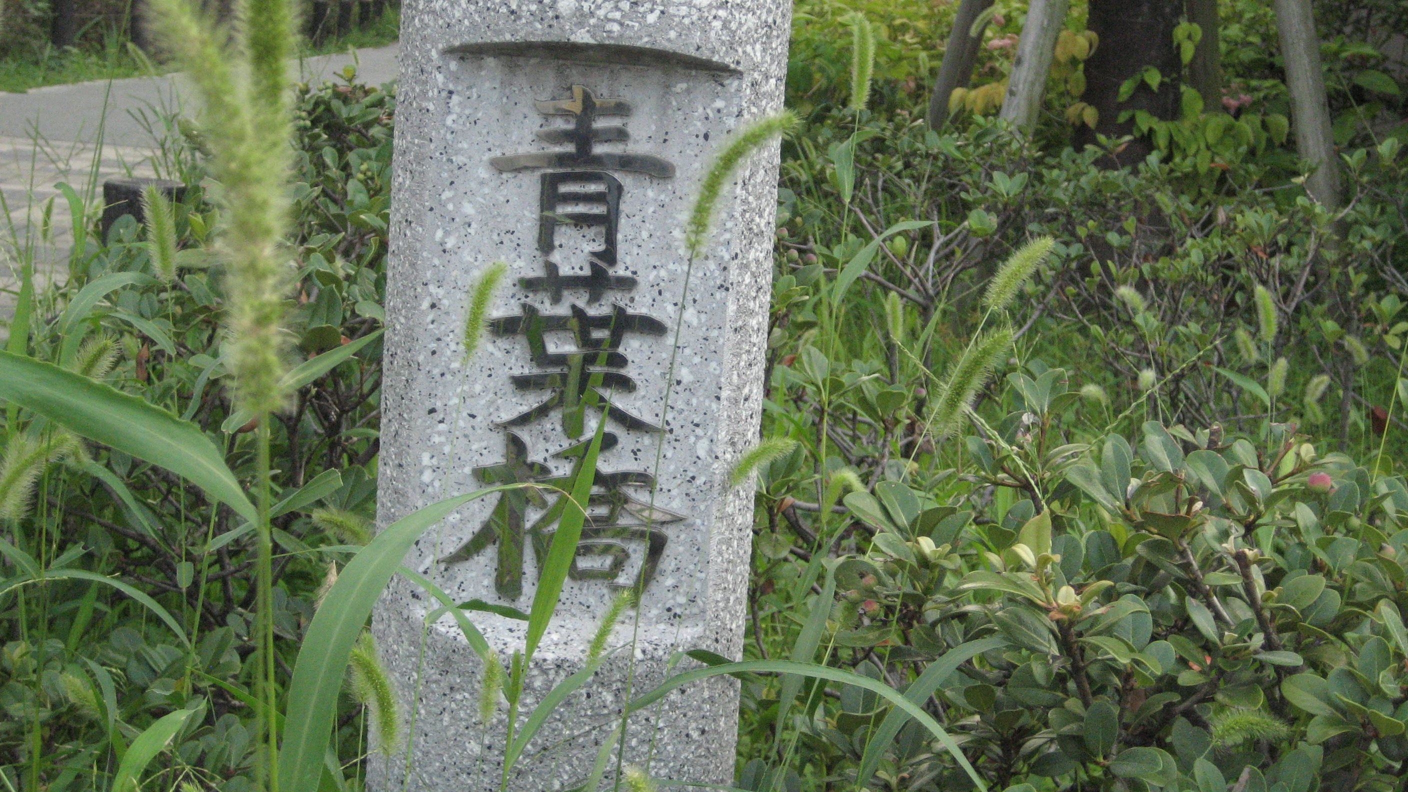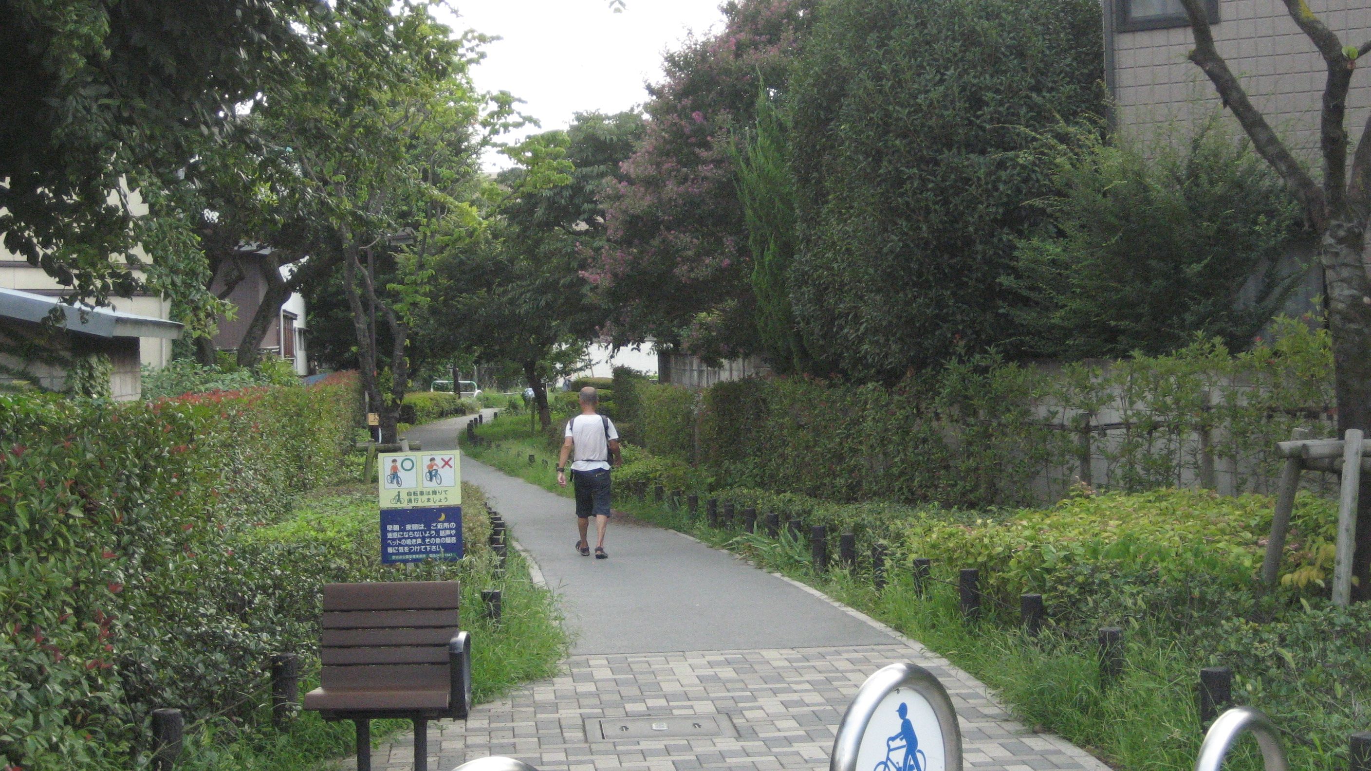 雑草に埋もれかけている石も発見……暑さに負けていたので写真が斜めってます。ポロシャツは汗みどろだったし、とにかくどこかで涼みたかったので緑道歩きはパスしちゃいました。