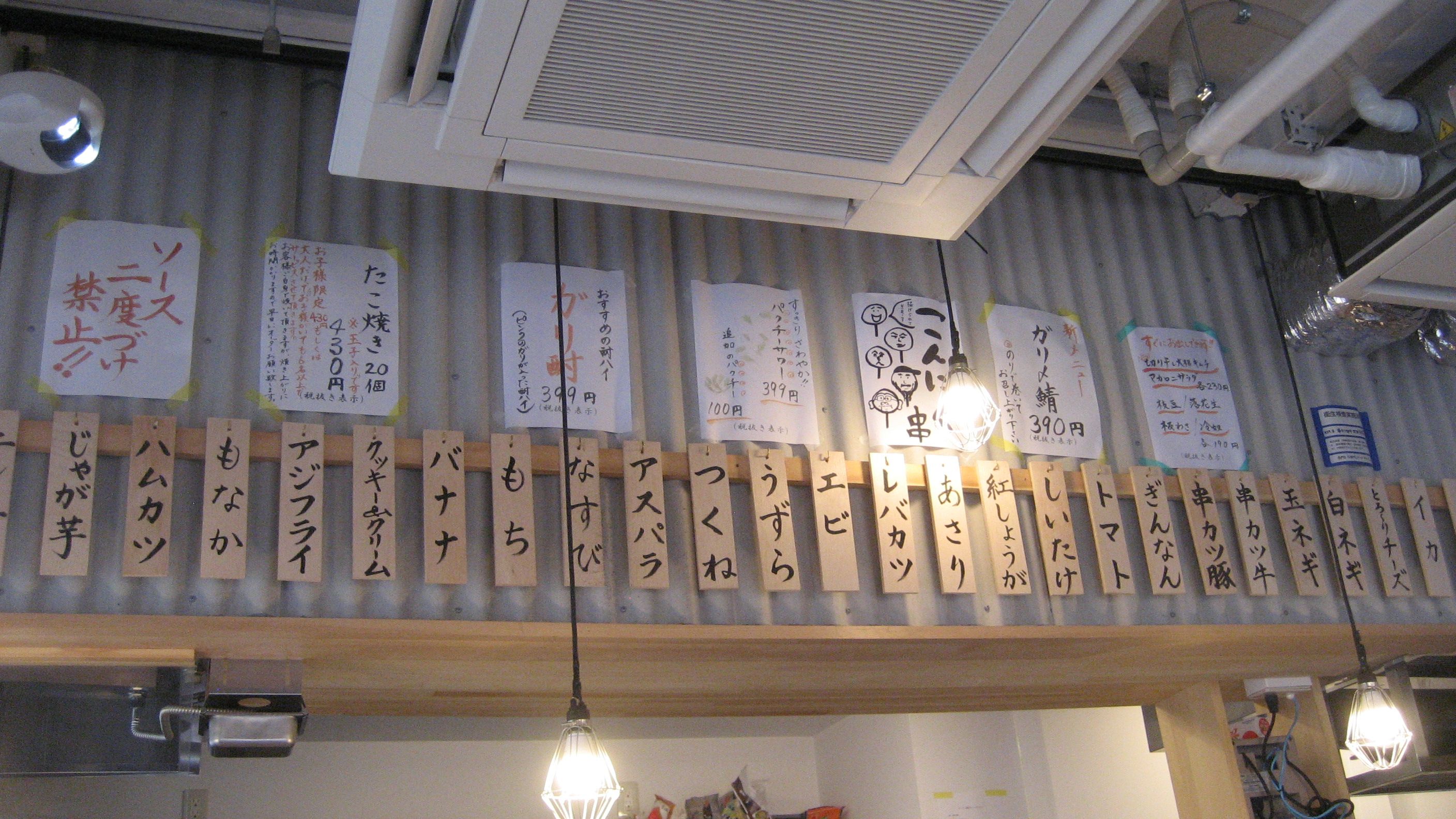 と、言う訳で <串カツ田中> ってところに初めてお邪魔しましたが、 串カツ田中・ 世田谷店 って、この店が1号店だそうです……おまけに100円均一もこの店だけだそうですよ~……